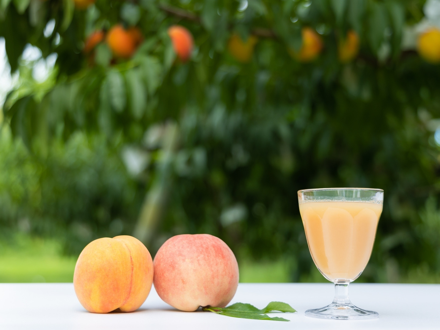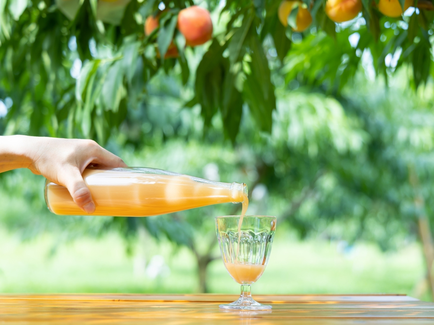 「この桃を、もっと多くの人に届けたい」その思いから、桃のエッセンスをそのまま閉じ込めた100%の桃しぼりジュースを誕生させました。