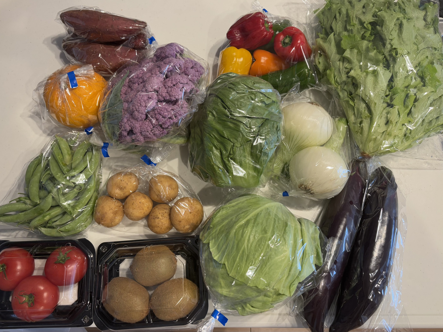 出荷品目は、野菜の生育(大きさ)にて判断し 12〜14品をお届けさせていただきます。