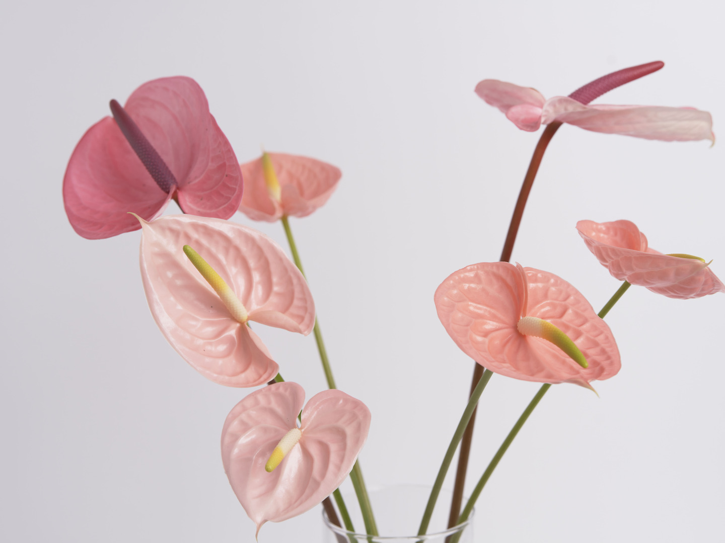 穏やかで優しい色合い! ピンクのアンスリウムセット(7本前後)