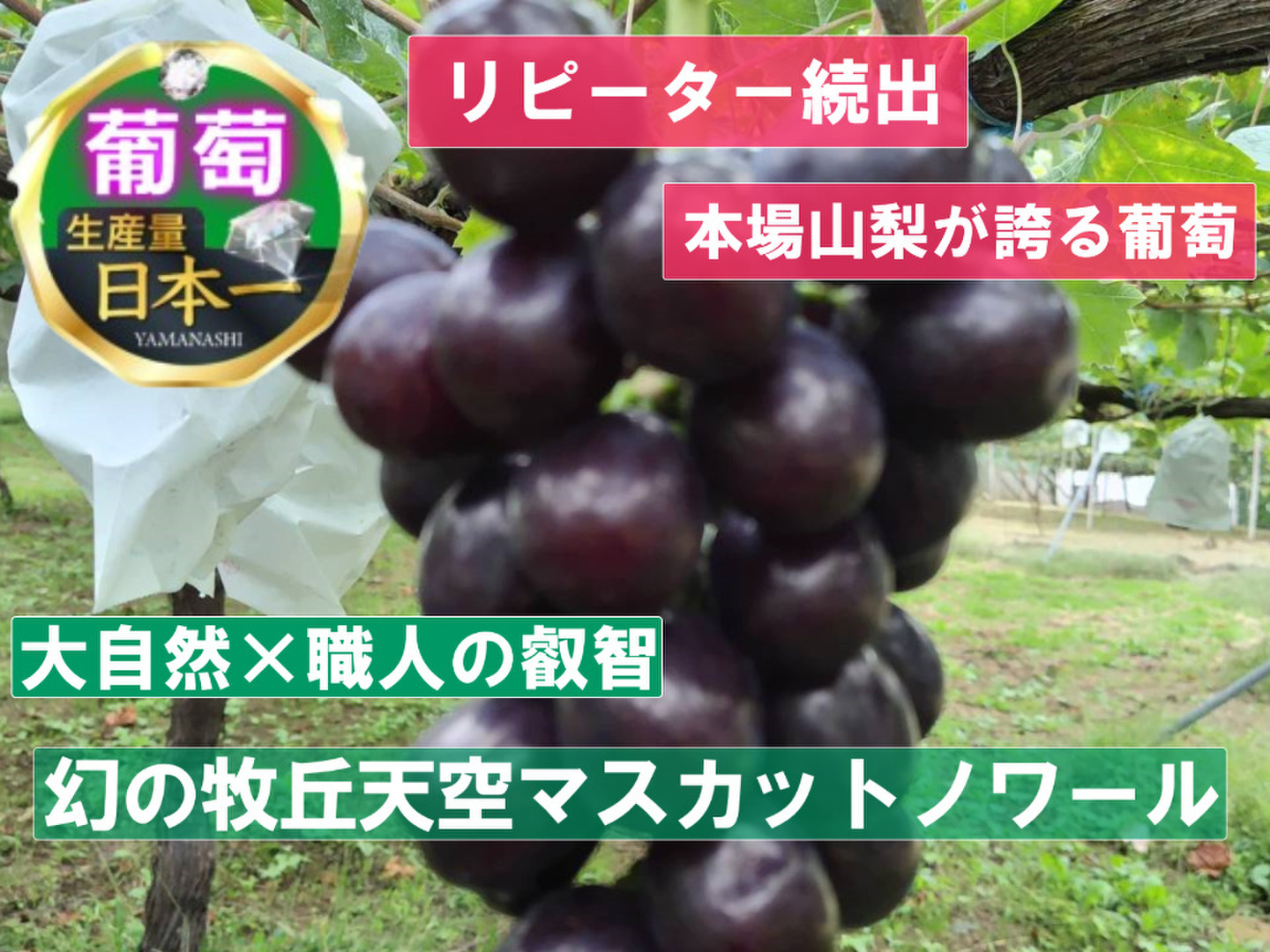 ※こちらは2026予約商品です。現在、希少品府である幻の牧丘天空マスカットノワールの注文が殺到しており数量を限定しております。上限に達し次第、予告なく終了しますので予めご了承下さいませ。