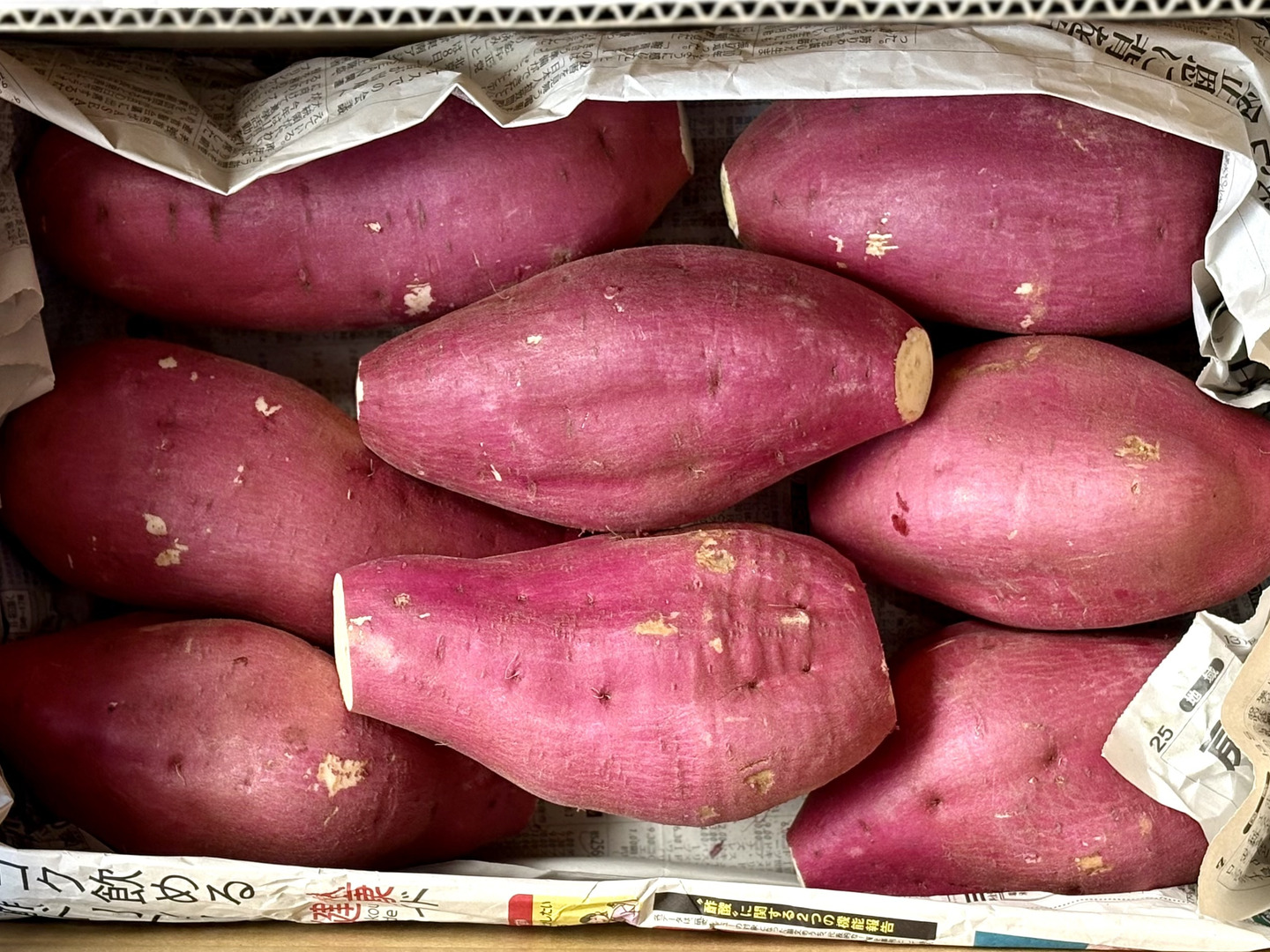 すぐお食べ頂いても美味しいですが、より甘くする為には、乾燥と温度に気をつけ、一つづつ新聞紙で包み、適切な保管の上、お芋の様子を見ながら追熟させてお食べください。ただし、水洗い済みの為、数週間程を目安に保管し使い切る事を推奨いたします。