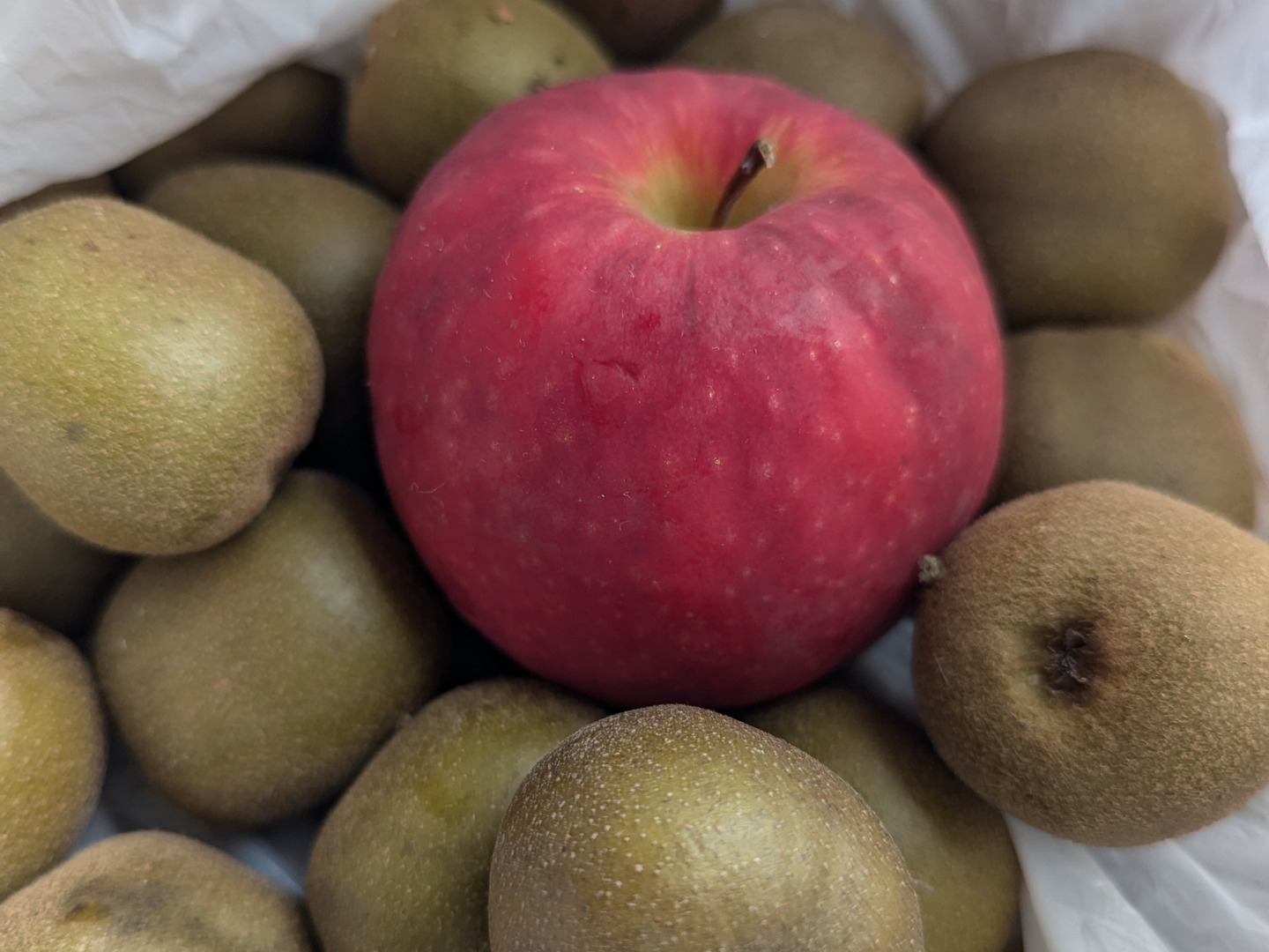 追熟用に小さいサイズをおまけで入れます!半分に切って一緒に袋に入れて封をしてください。普通のキーウィに比べ追熟速度が早く、お尻の部分にシワが出たら食べ頃サインです。