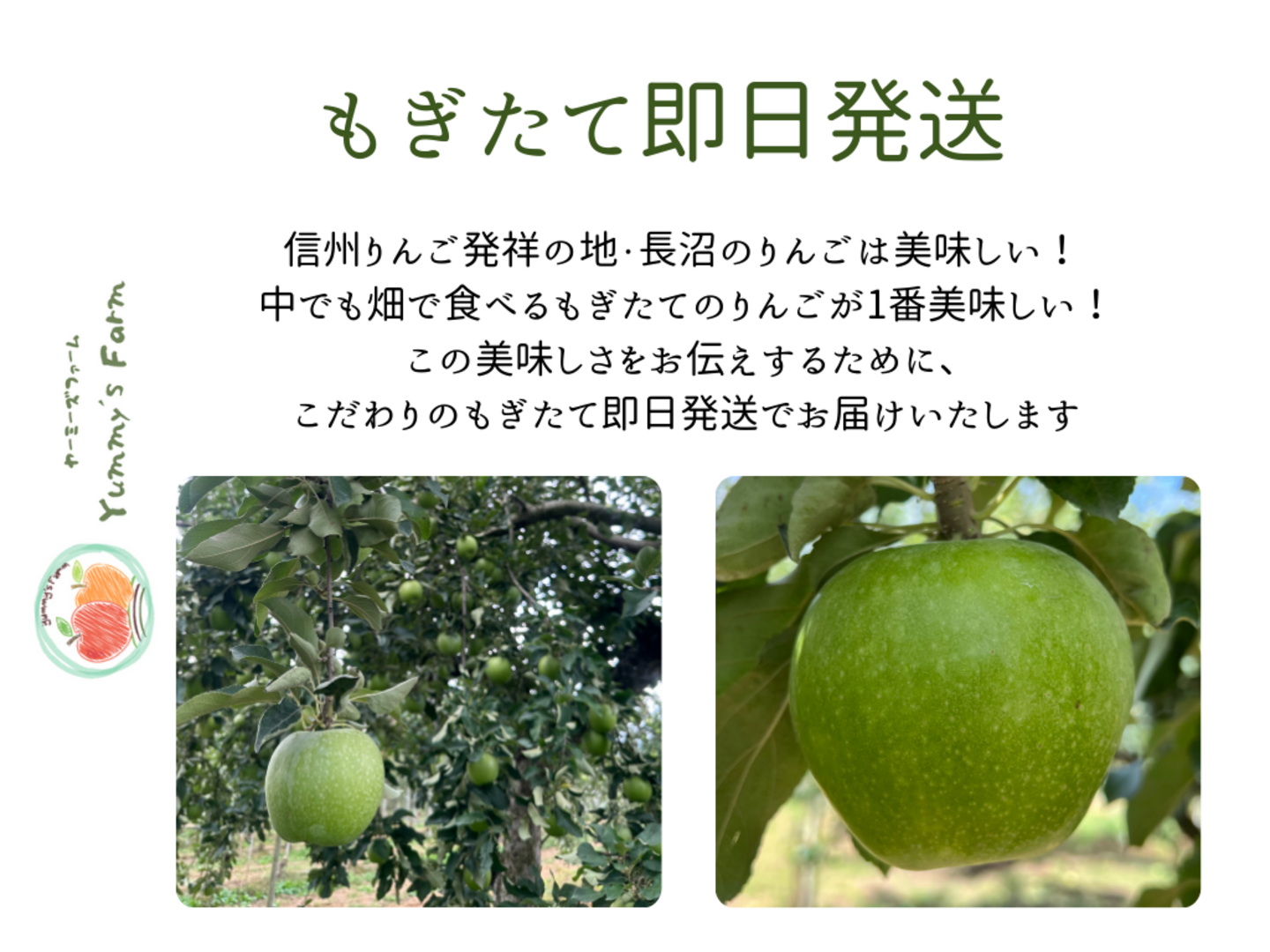 寒暖差が大きく雨量が少ない果樹栽培に適した長野市長沼地区のりんごはシャキッとした歯ごたえで甘味と酸味のバランスが良く美味しく仕上がります。