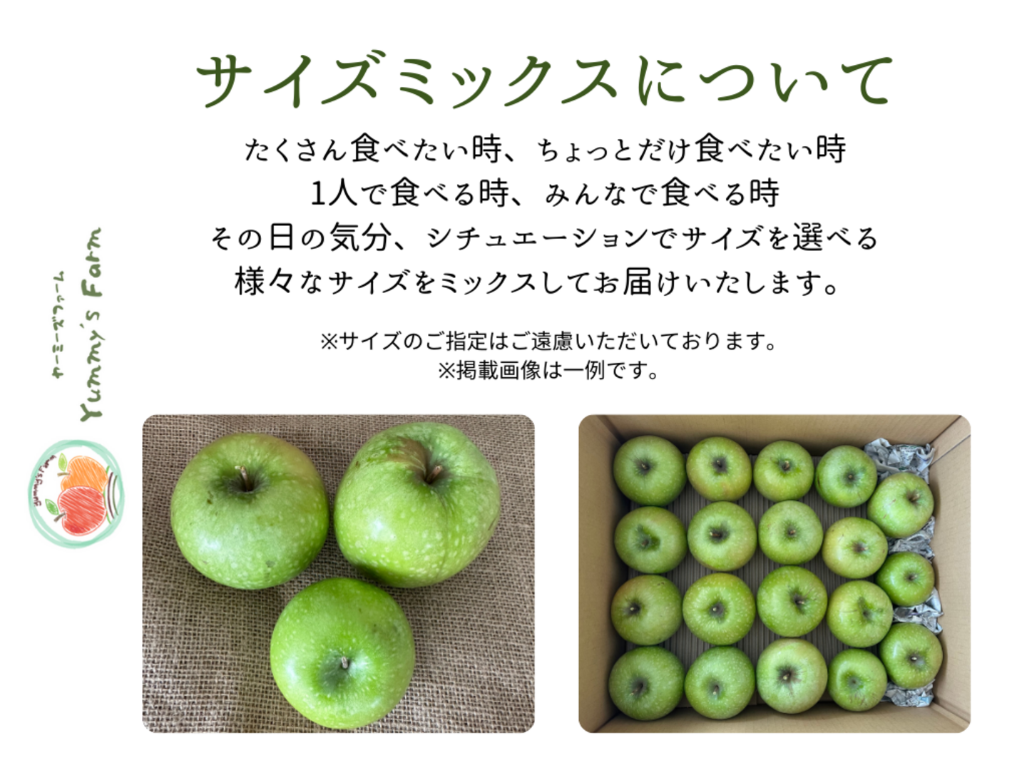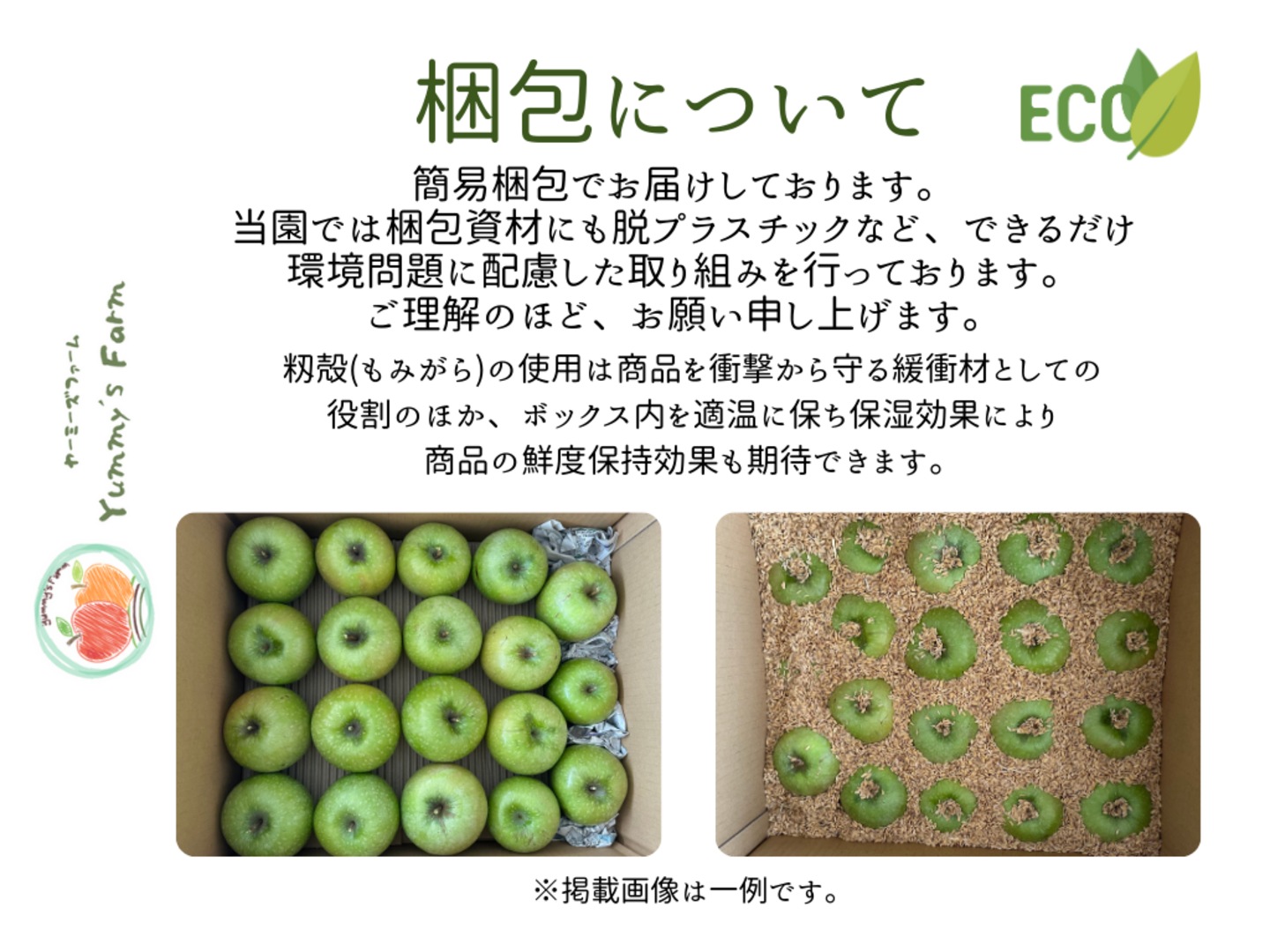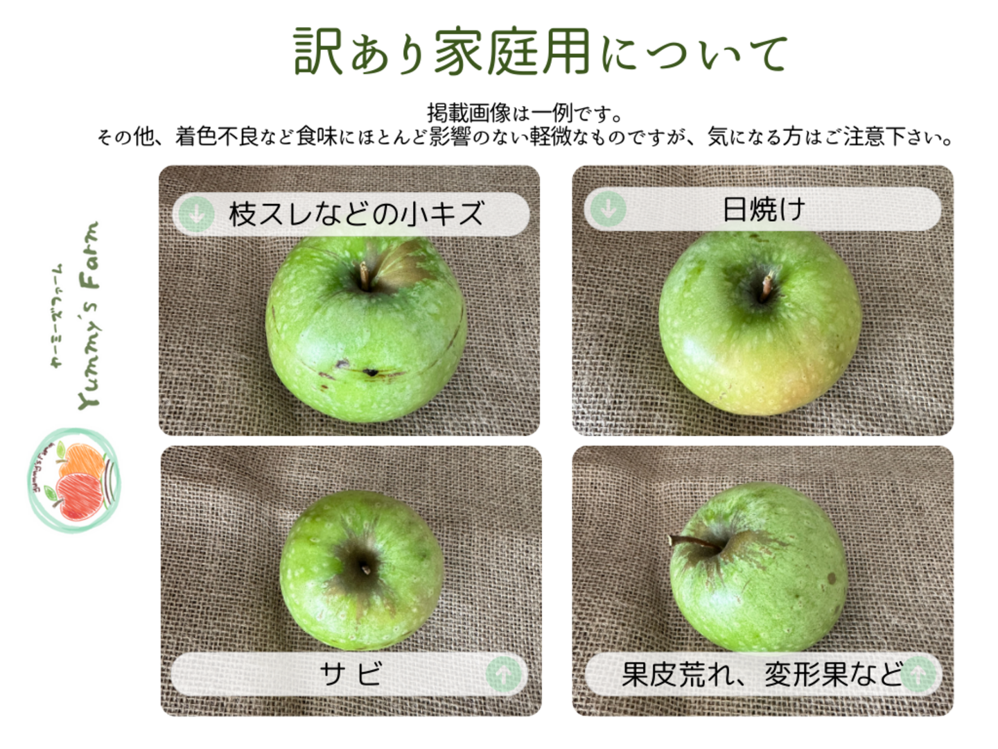 サイズ不揃いや着色不良のほか、枝スレなどの小キズ、サビ、日焼け、変形果など軽微なもので生食にはほとんど影響ございません。