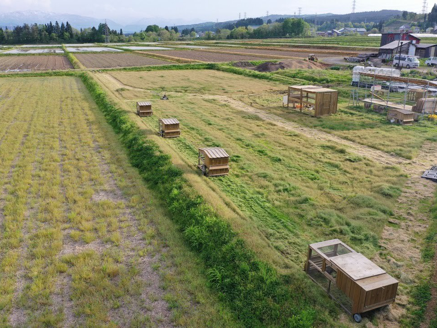 健康な鶏を育てる場所として農薬不使用の農地を選んでいます。チキントラクターに入る鶏をひよこのうちから豊かな自然環境で育成し、飼養環境や餌など個別に管理し、健康で丈夫に育てることを徹底しています。
