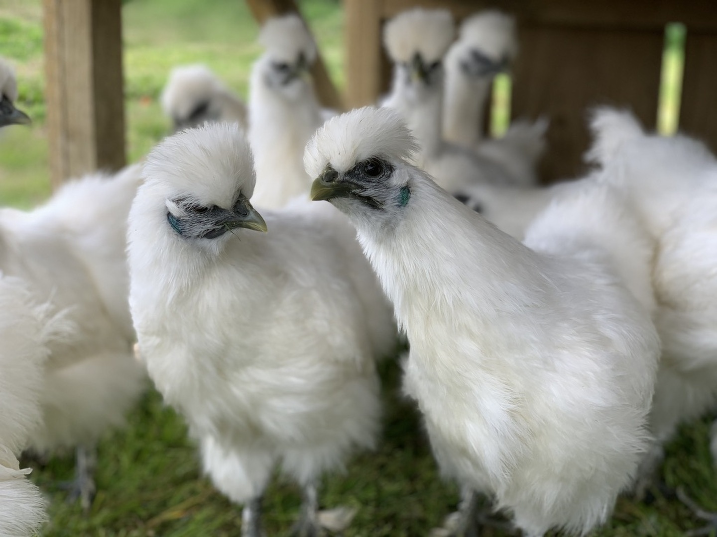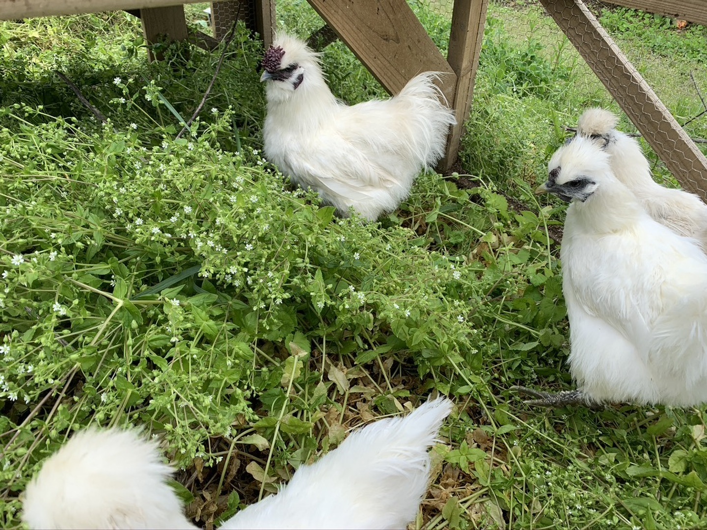チキントラクターによる福祉養鶏を実践。自然環境の中、草の上でストレスなく過ごしている鶏は“野のもの”や農薬やホルモン剤などを含まない原料で自家製発酵飼料を用意しています。健康を維持しながら鶏たちは穏やかに過ごしています。