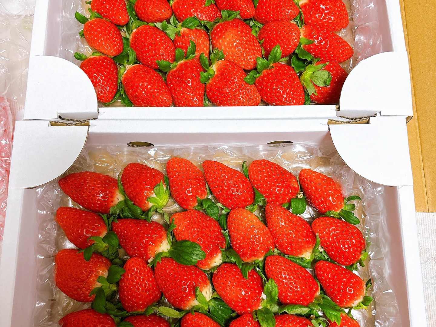 梱包には、細心の注意をはらいますが、いちご🍓どうしがぶつかるところは押さえや、つぶれ、振動によるすれなど傷みが出る場合があります。ご了承のうえご注文お願いいたします。