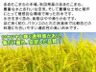 大豆粕・米ぬか・菜種などを原料にしたオリジナル有機肥料(有米味くん「うまみくん」)を長年使用し、可能な限り大地に優しい自然循環農法を実践しております。甘味・弾力・艶・香りも良く、噛めば噛むほど旨味が判ります。作り手は、米作りのプロが集う「愛和自然農法研究会」のメンバーの一員です。通常のお米より化学肥料・化学農薬を50%以上カットしてつくった安心・安全性の高い特別栽培米あきたこまちです。