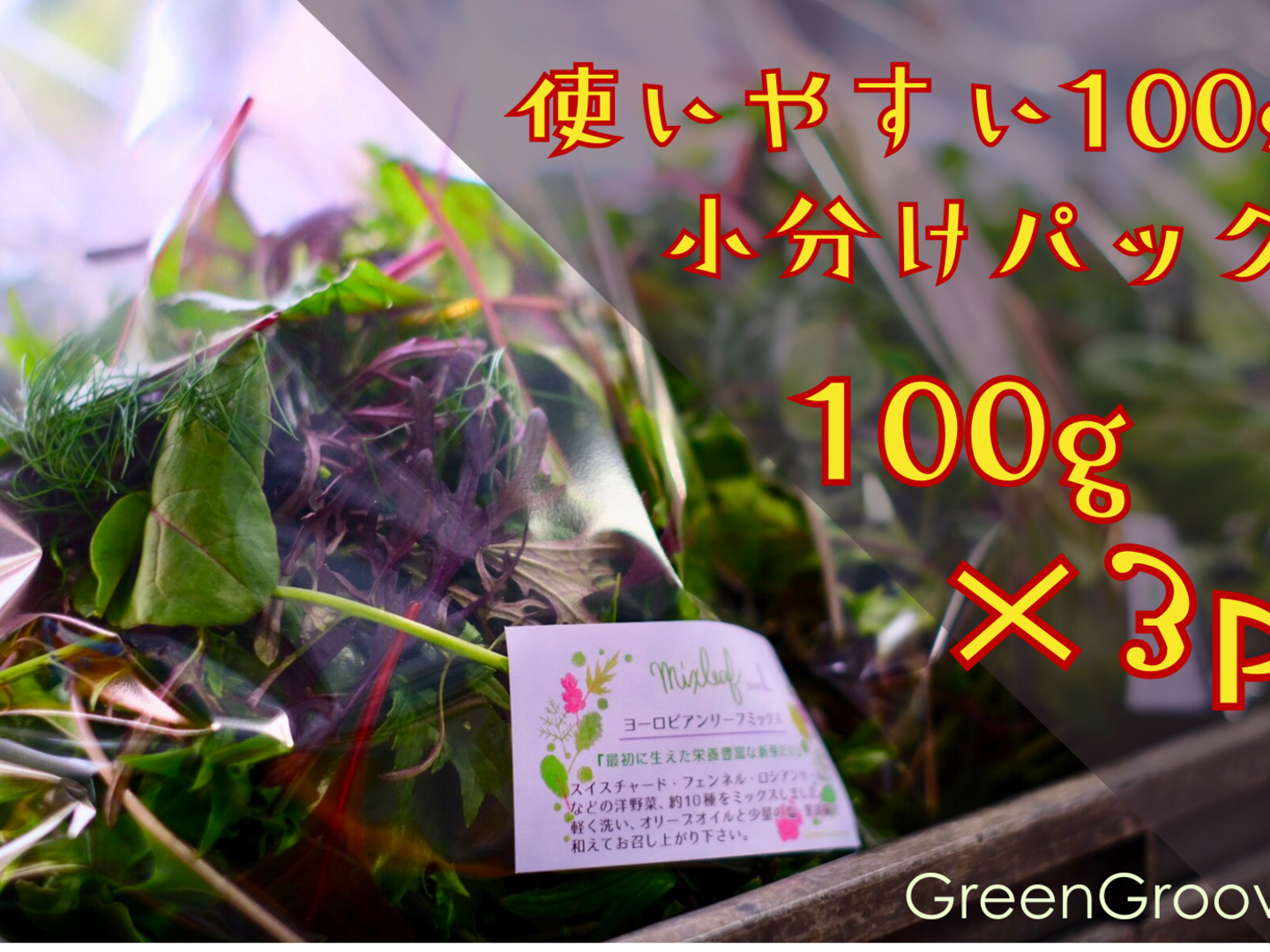 | 内容 | 大阪府和泉市産・ヨーロピアンリーフミックス100gパック×3p | ||||||