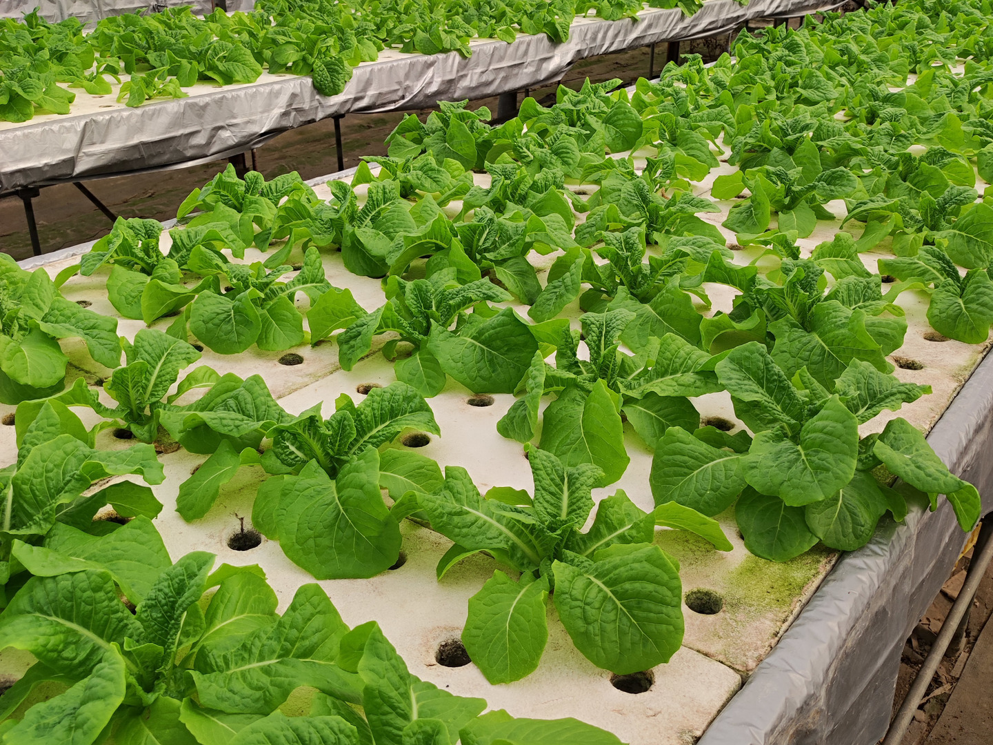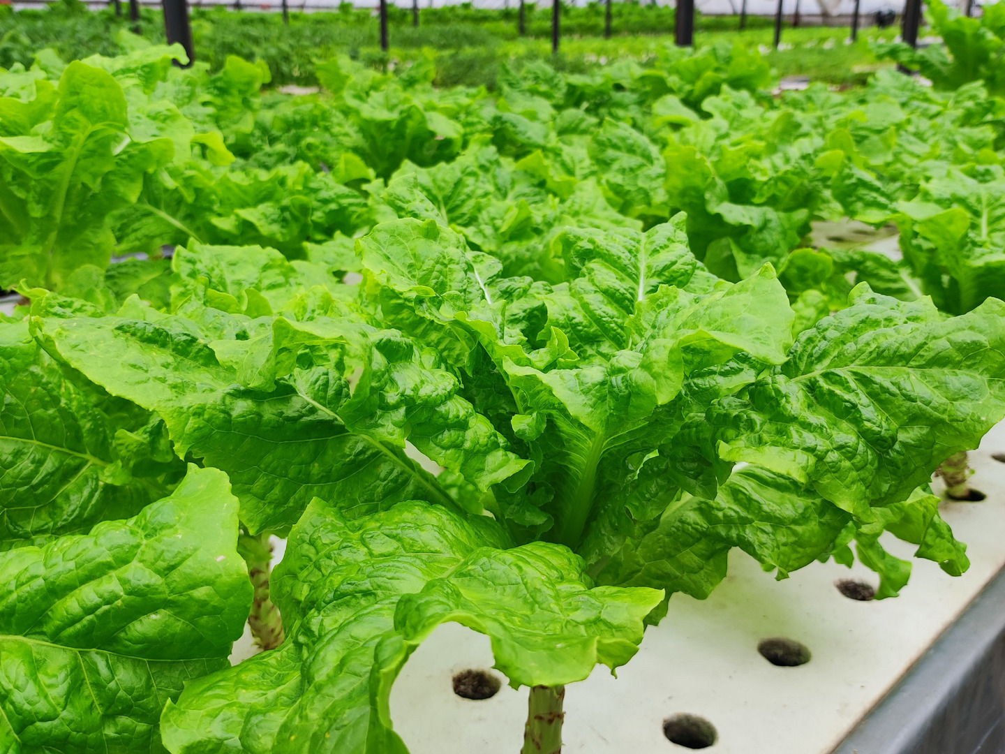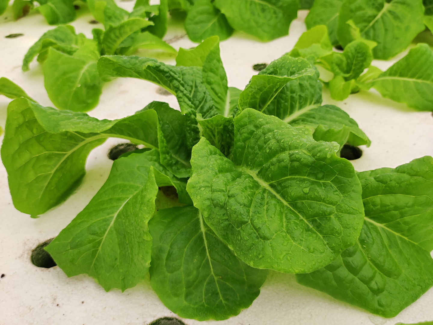 ・ハウス水耕栽培のため、泥はねが無くきれいでみずみずしいサンチュです。