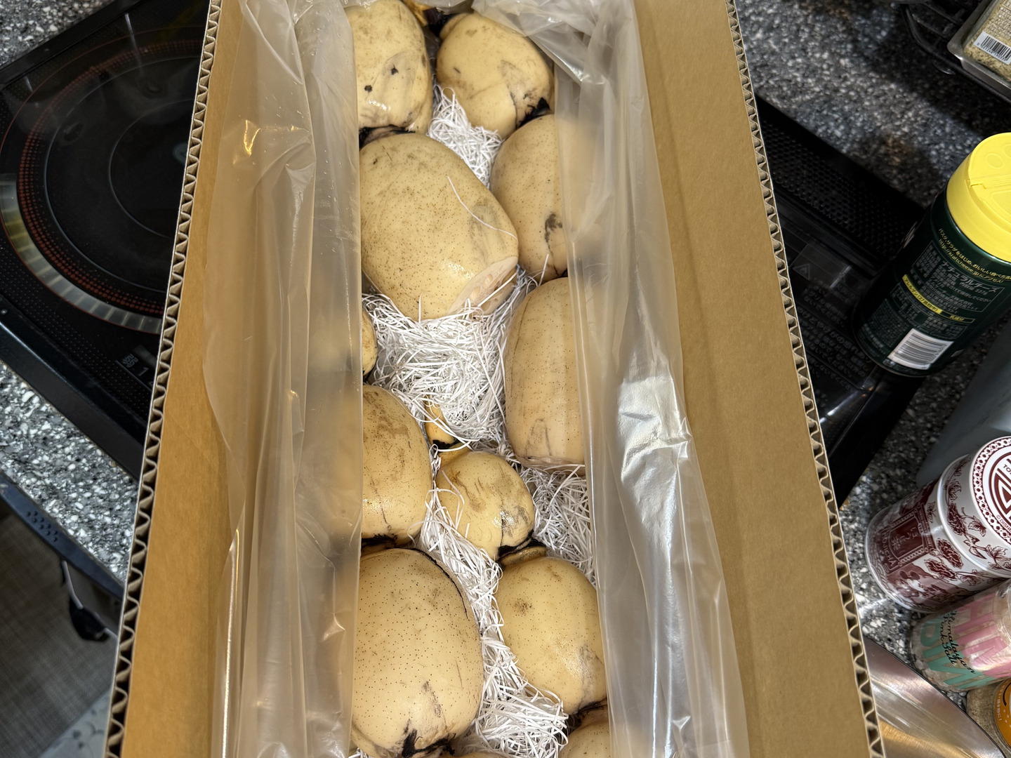 7月から11月・4月から5月は気温が高くクール便にて対応させていただきます。表皮の赤茶色の付着は土中に含まれている鉄分で無害ですのでご安心ください。
