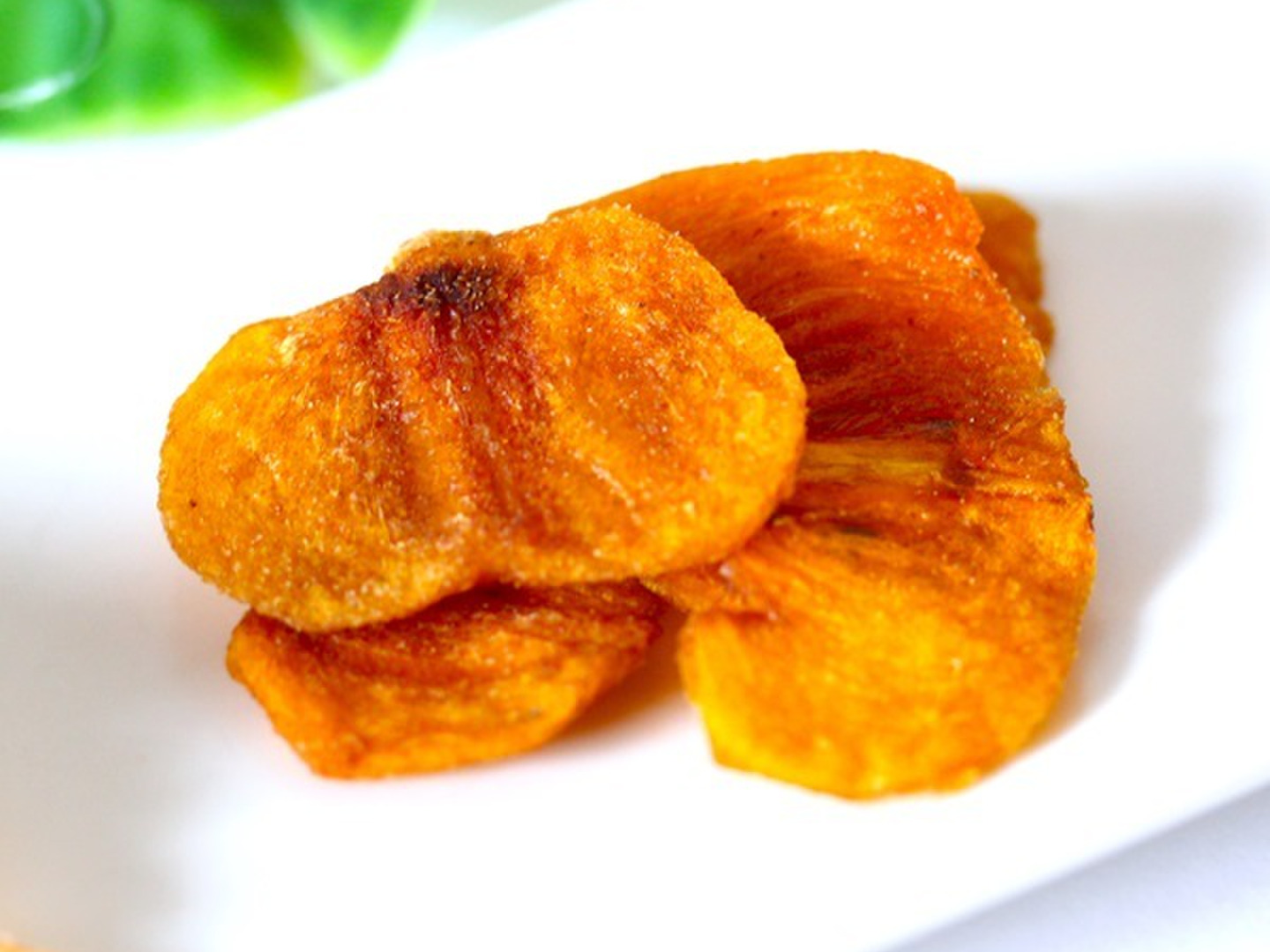 低温で乾燥させることで、やわらかな食感の柿チップに仕上がっています。