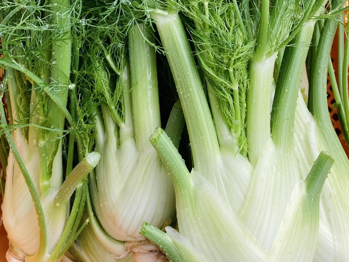 早生品種で塊茎部(フィノッキオ)の厚みは5-6cm程です。柔らかく香りも良いので生食に向きます。若くて柔らかい葉を残してカット、梱包します。