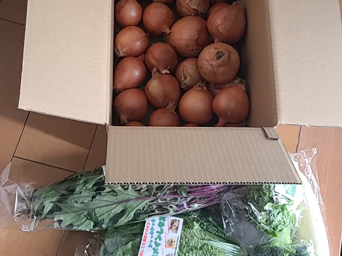 こちらは福袋で、玉ねぎに葉物野菜を多数入っている商品となります。日頃の感謝の気持ちで、玉ねぎ以外は全てサービスとなります。