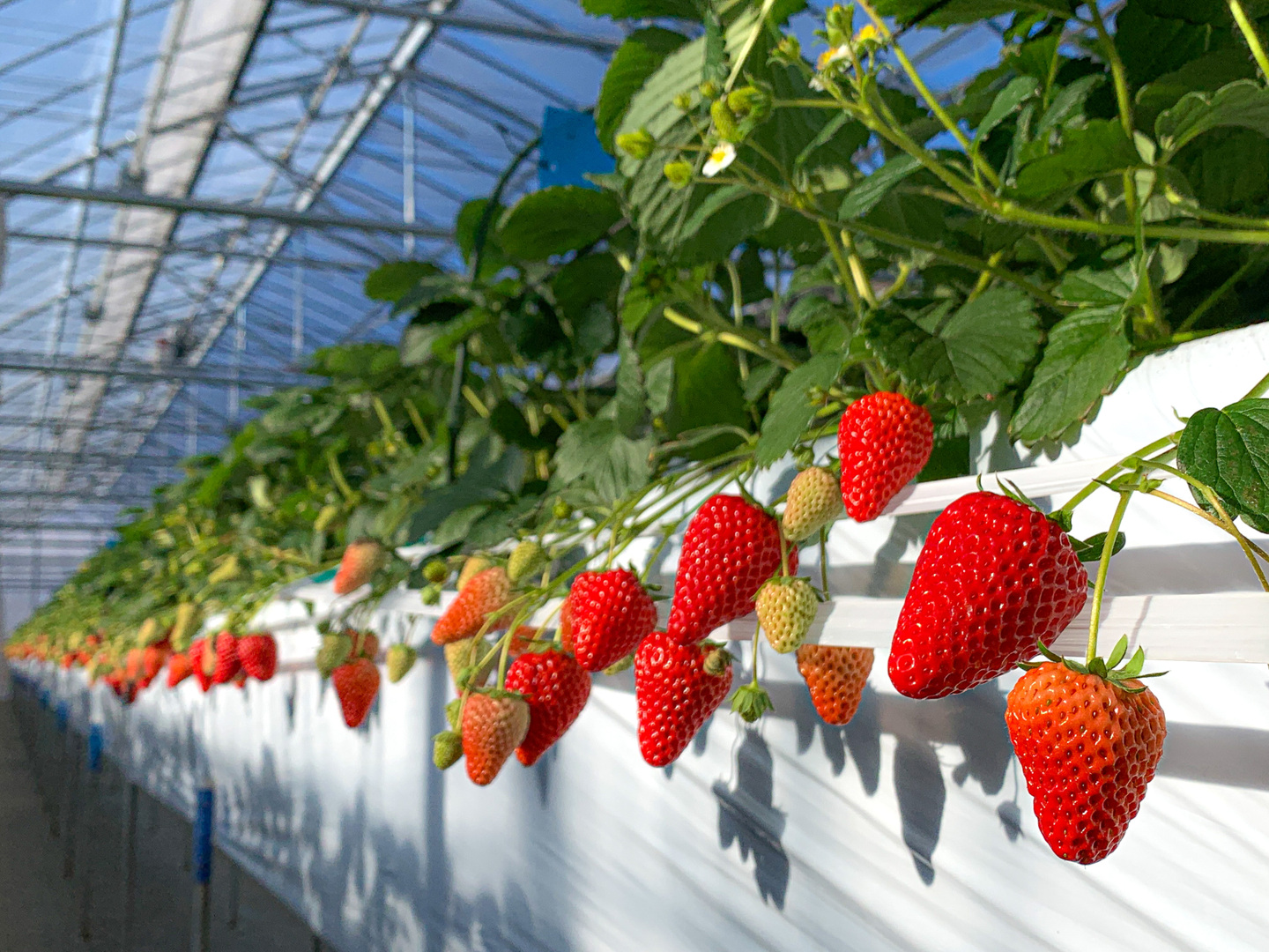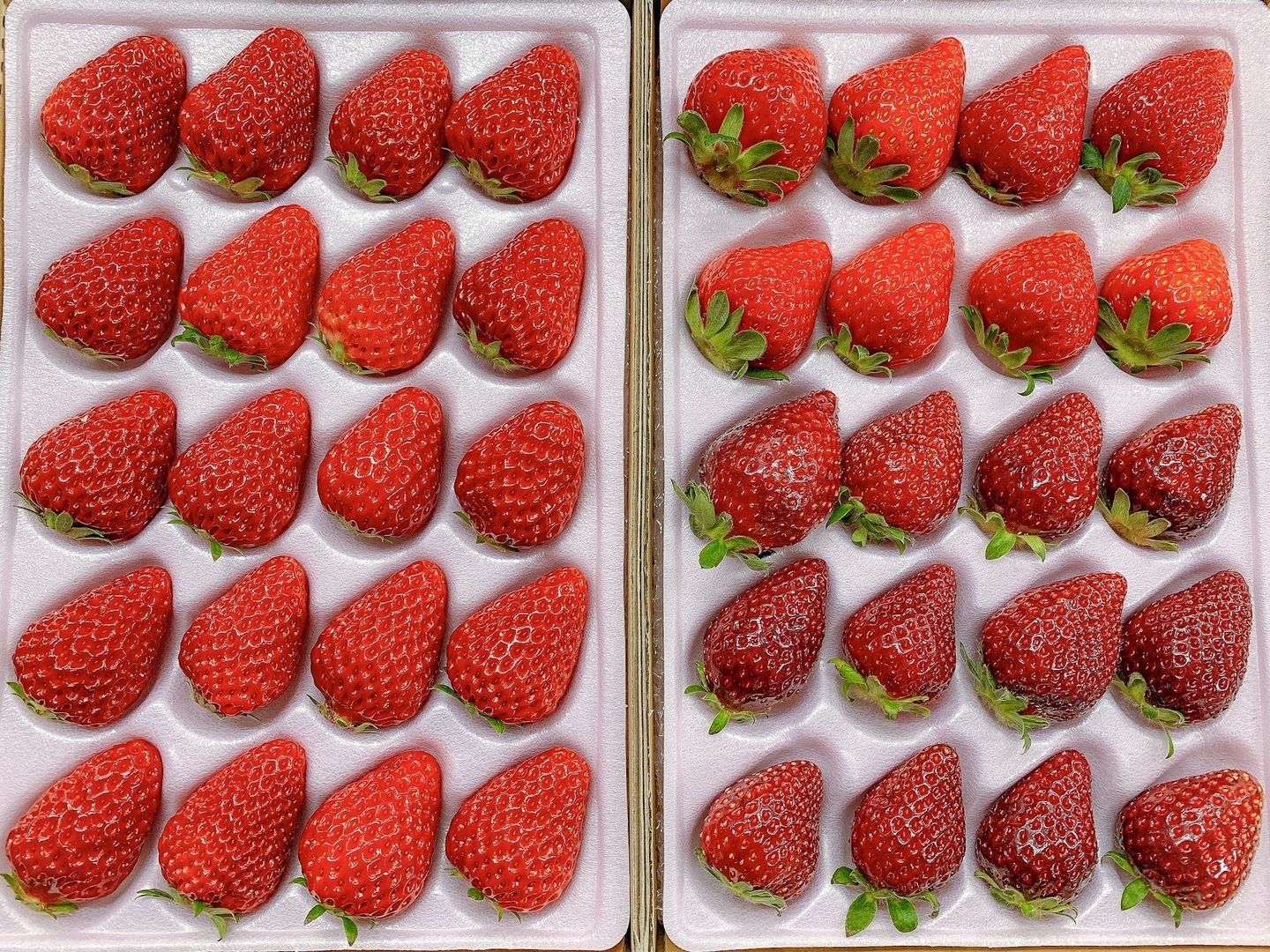 ◎品種は「かおり野」「よつぼし」「紅ほっぺ」「恋みのり」などから時期に応じて選定します。当園の「かおり野」と「よつぼし」は、全国いちご選手権で入賞を果たしました。(複数の品種のミックス組み合わせになる場合があります。)