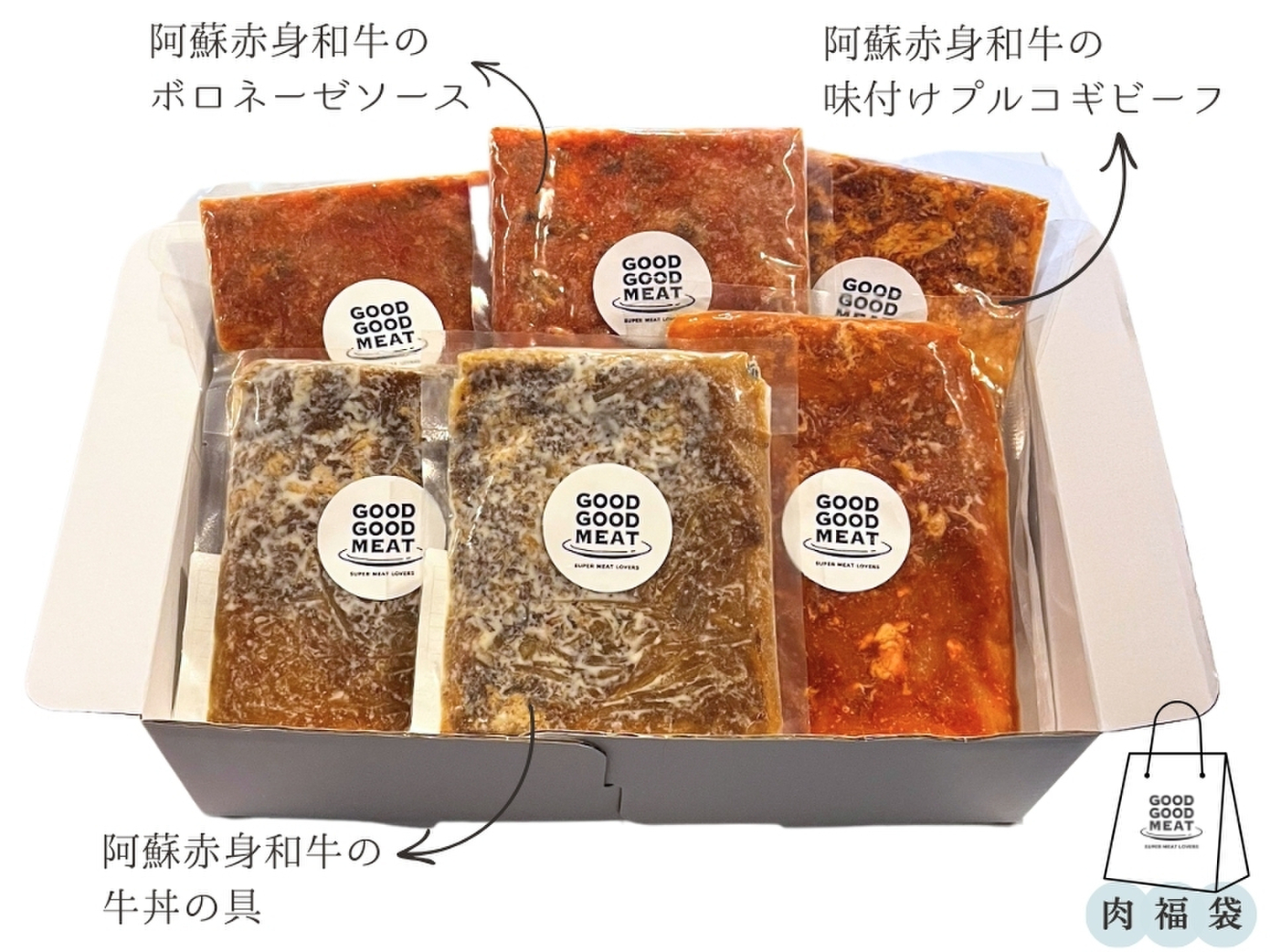 | 内容 | 阿蘇赤身和牛の味付きプルコギビーフ200g、ボロネーゼソース180g、牛丼の具150g(各2個ずつ) | ||||||