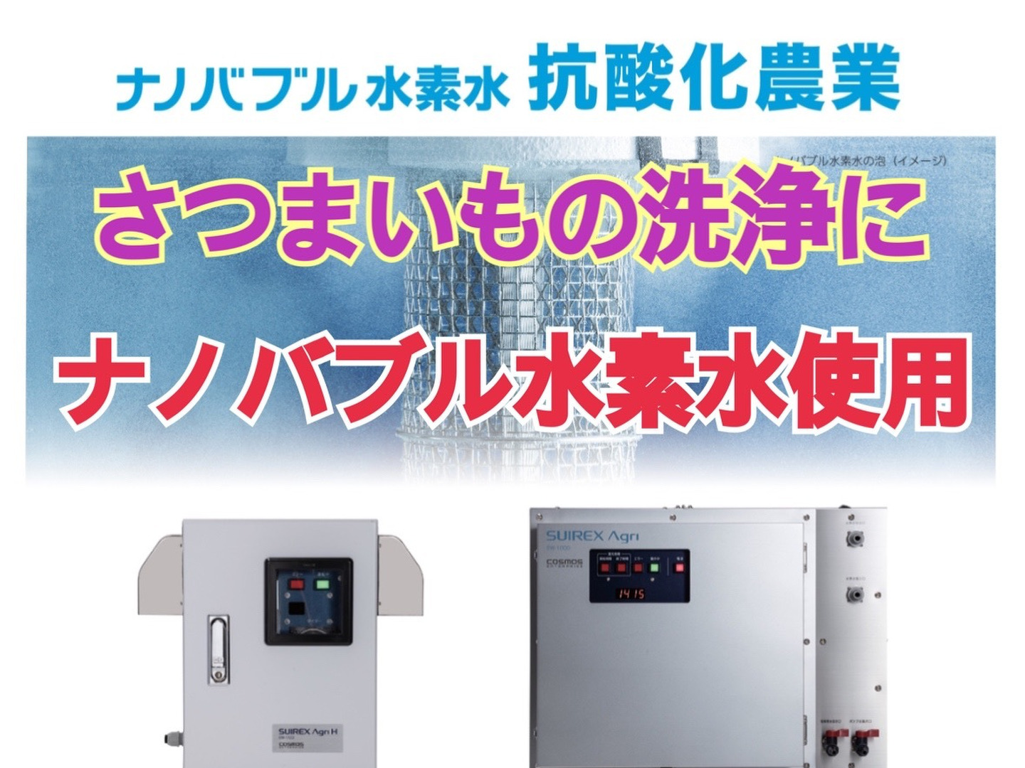 - さつまいもはキュアリング処理、洗浄にはナノバブル水素水を使用