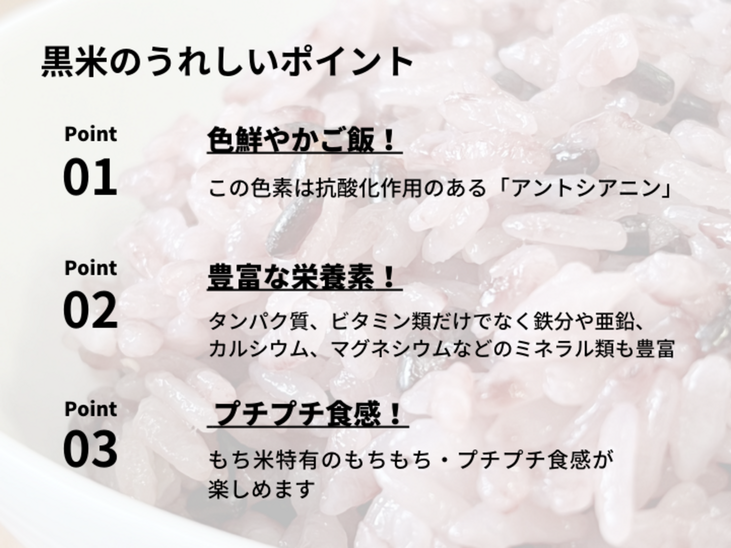 黒米はもち米であるため、一粒一粒しっかりと噛み応えがあり、プチプチした食感を楽しむことができます。