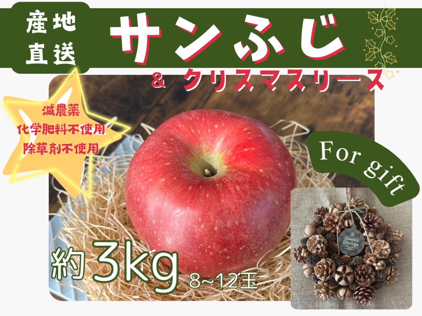 特選サンふじ 3kgとおしゃれでシンプルなクリスマスリースセット