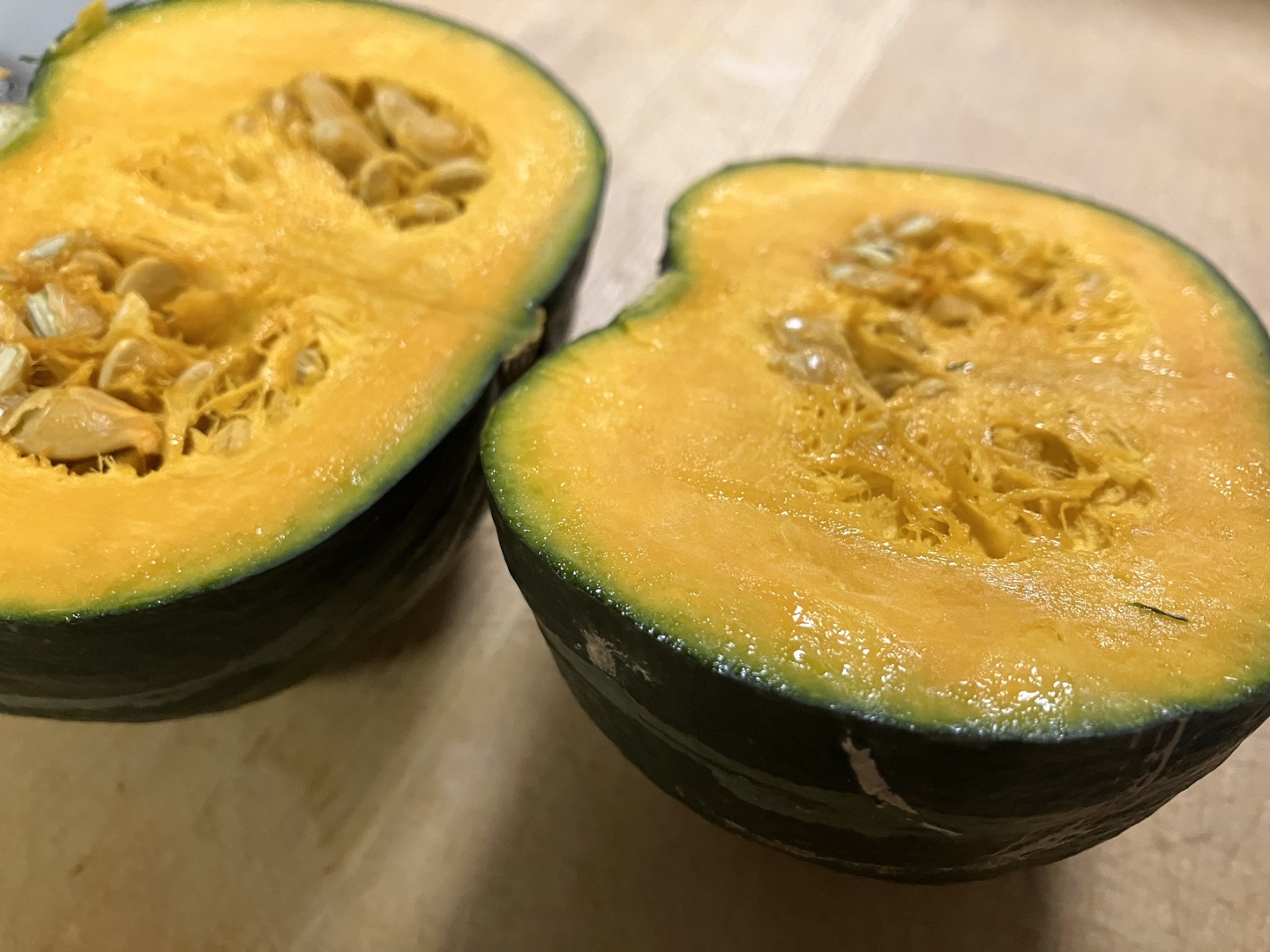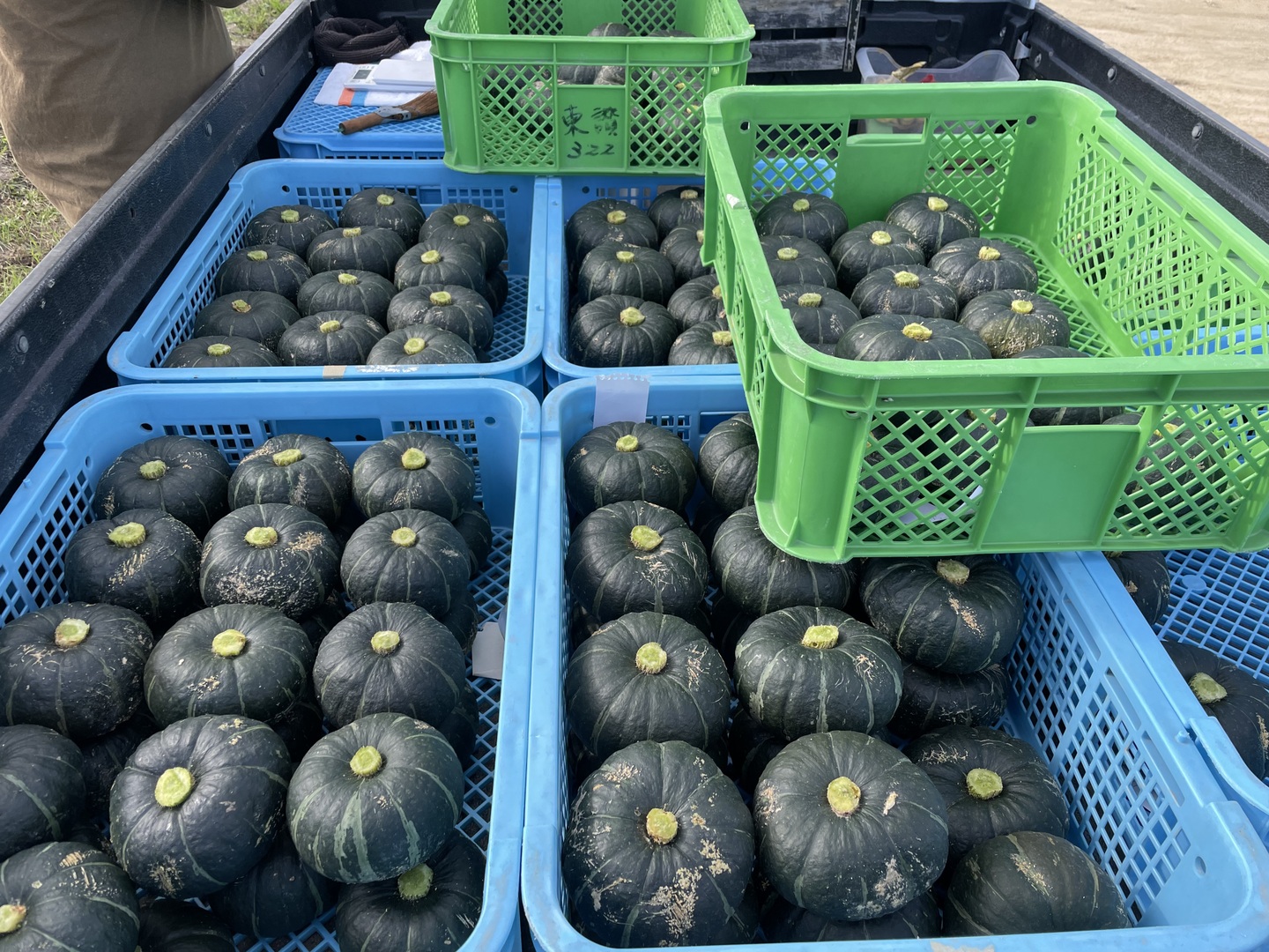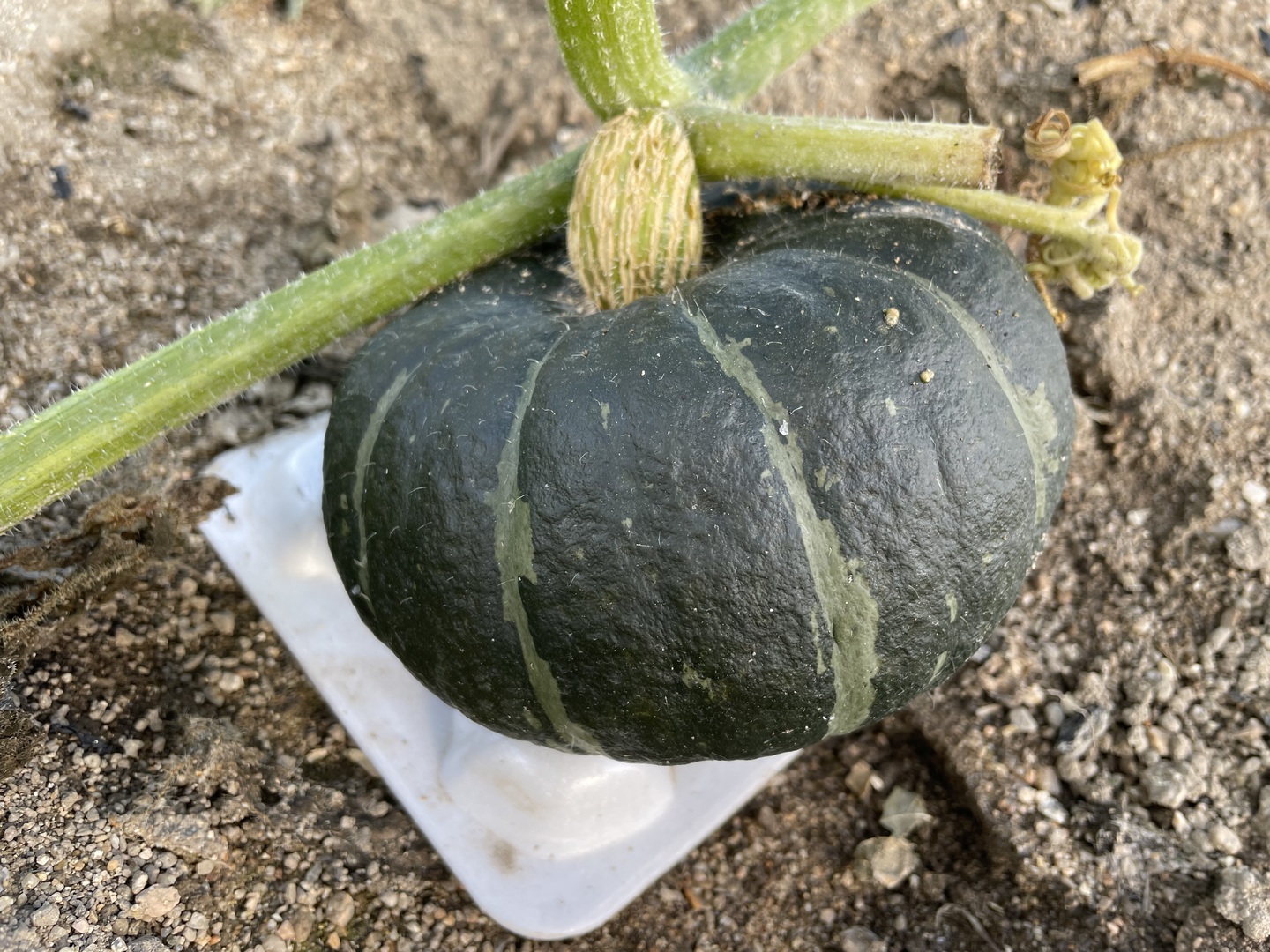 今回の品種は、栗カボチャのひとつ「すずなりパンプティ」。ホクホクとした食感と甘さが特徴の食べきりサイズのミニカボチャです。