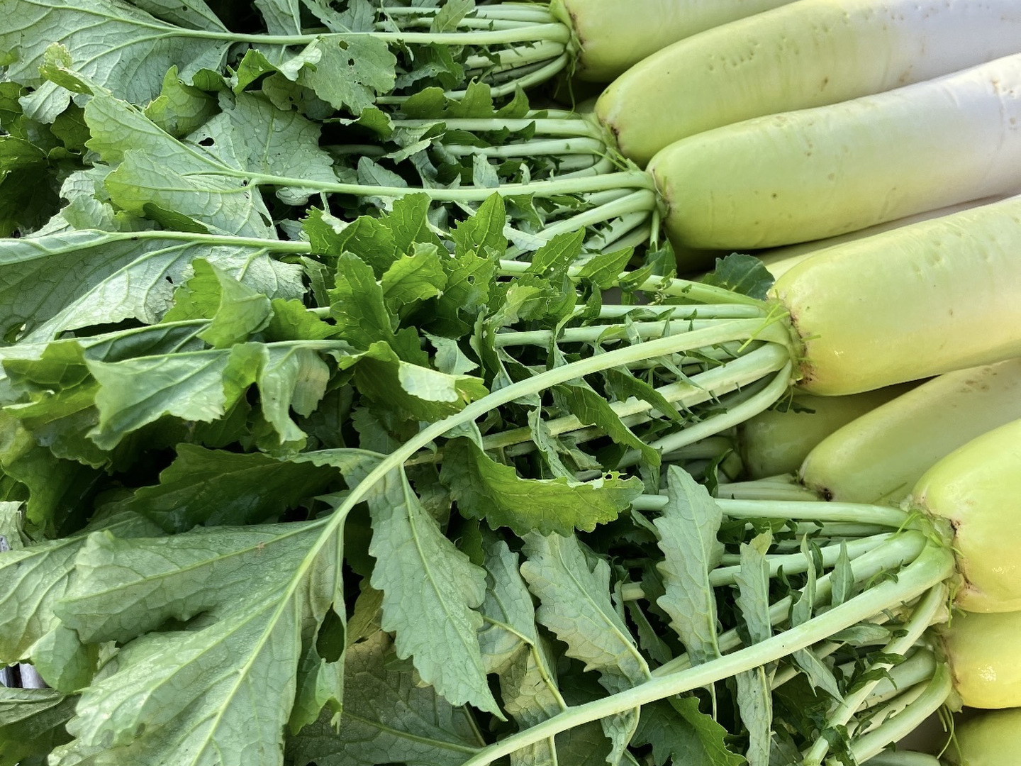 甘くて、柔らかく、火が通りやすいみずみずしい大根です。
