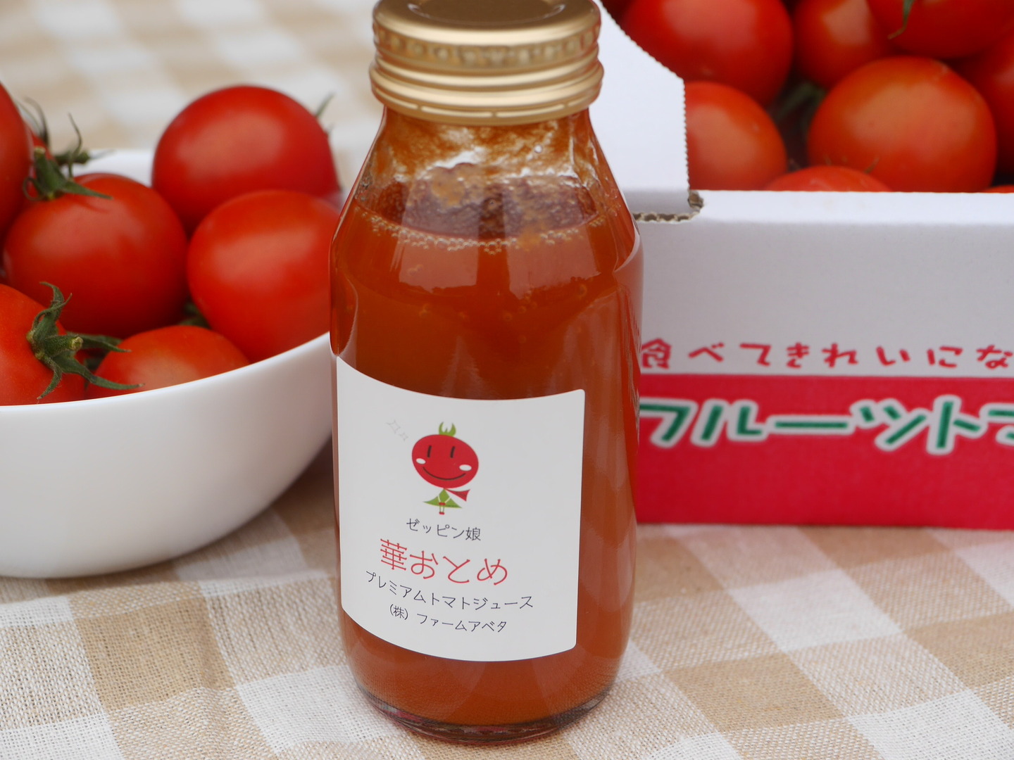 【ジュースセット】皮が薄くジューシーな中玉フルーツトマト ゼッピン娘(華おとめ) 1.7kgと華おとめトマトジュース1本のセット
