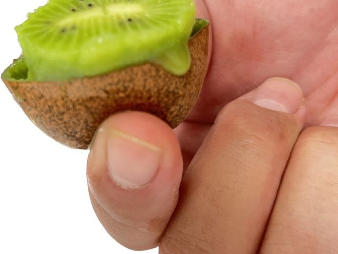 一般的なキウイより酸味控えめで甘みが強く、滑らかな食感です。一口ゼリーのように指で押し出して召し上がれます。