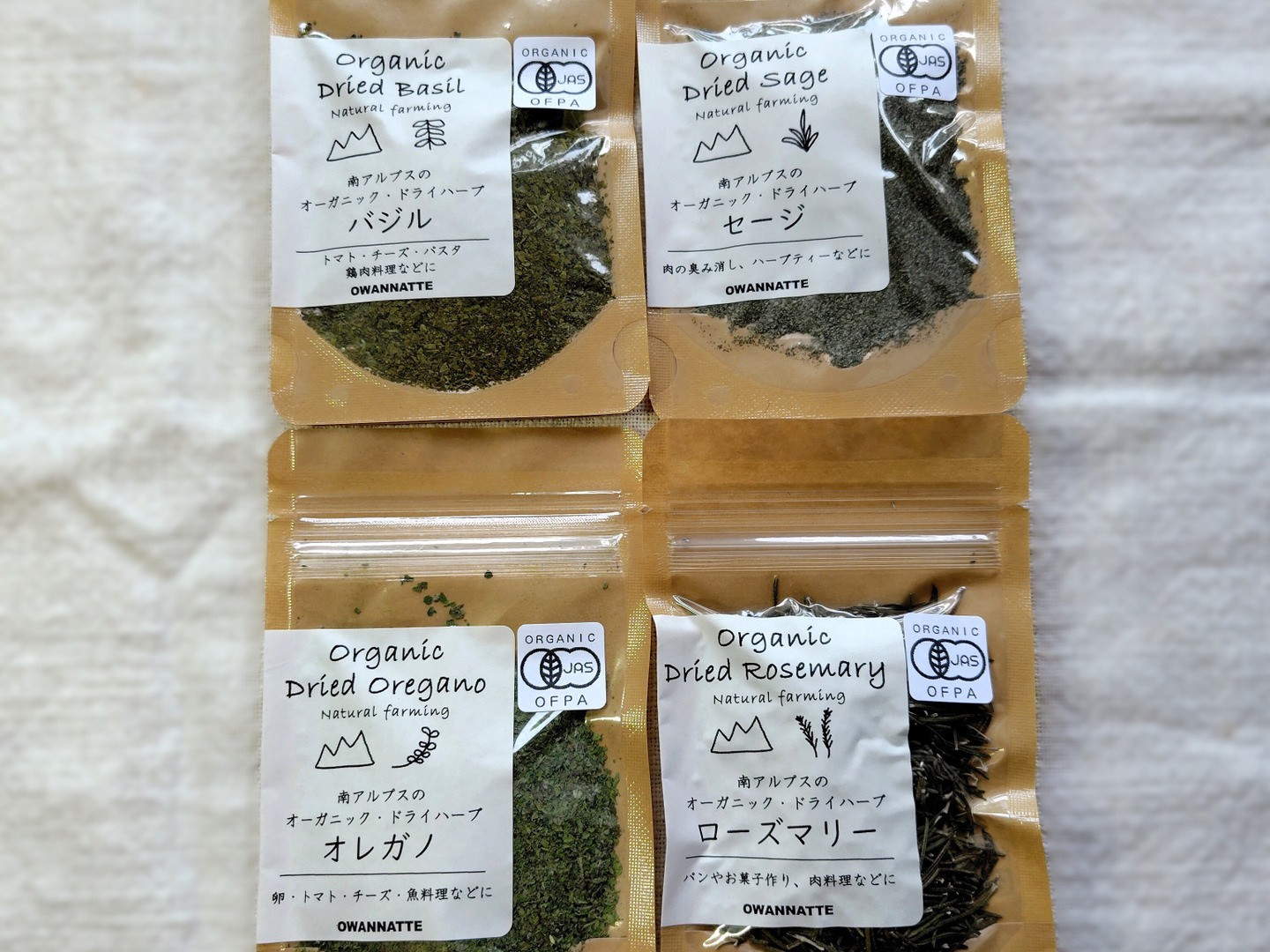 4種セット (バジル・セージ・オレガノ・ローズマリー) 南アルプスのオーガニック・ドライハーブ