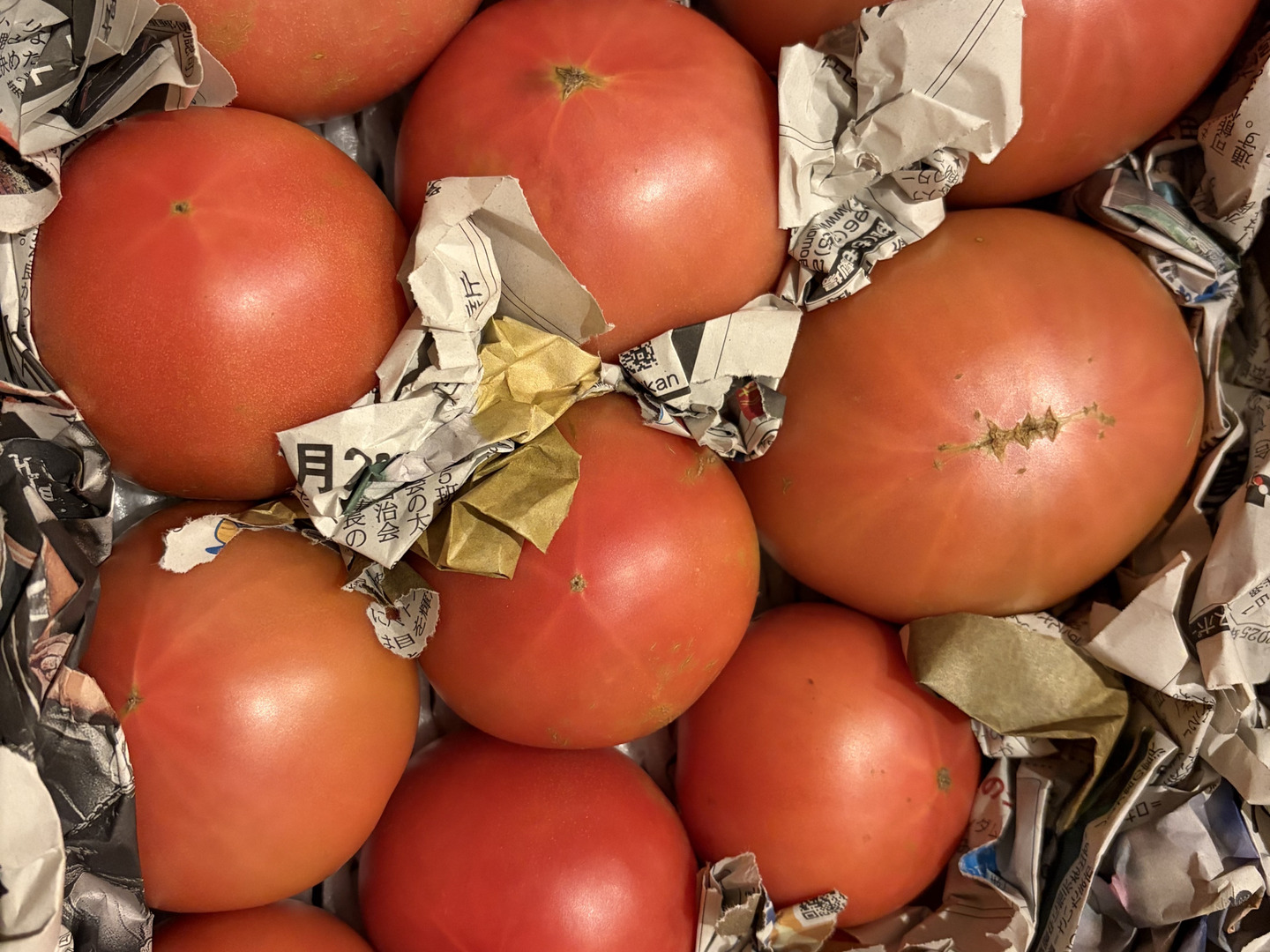 輸送の衝撃で割れたトマトから
