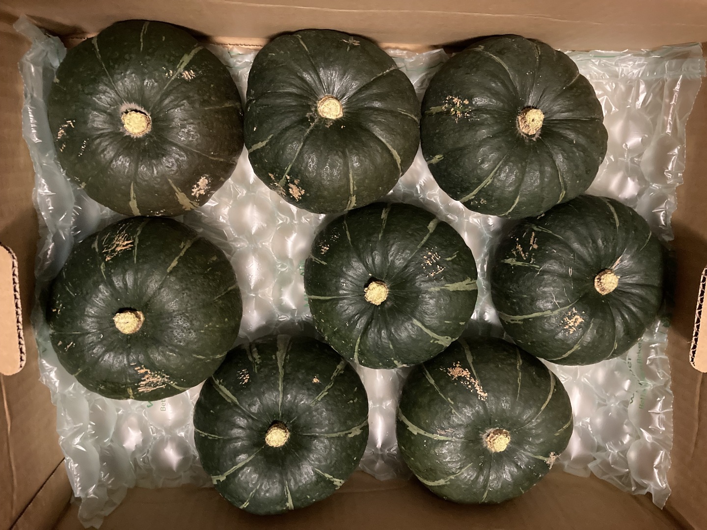 今回の品種は、栗カボチャのひとつ「すずなりパンプティ」。ホクホクとした食感と甘さが特徴の食べきりサイズのミニカボチャです。