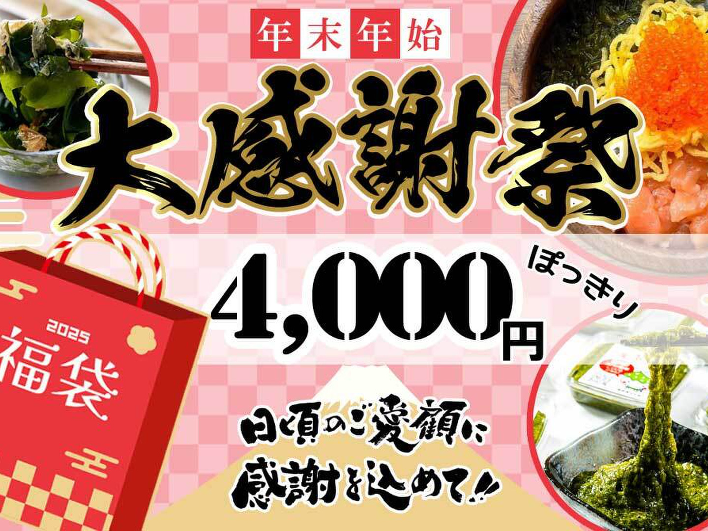 大感謝祭!福袋4000円!缶べぇ3本 アカモク4個 わかめ2袋