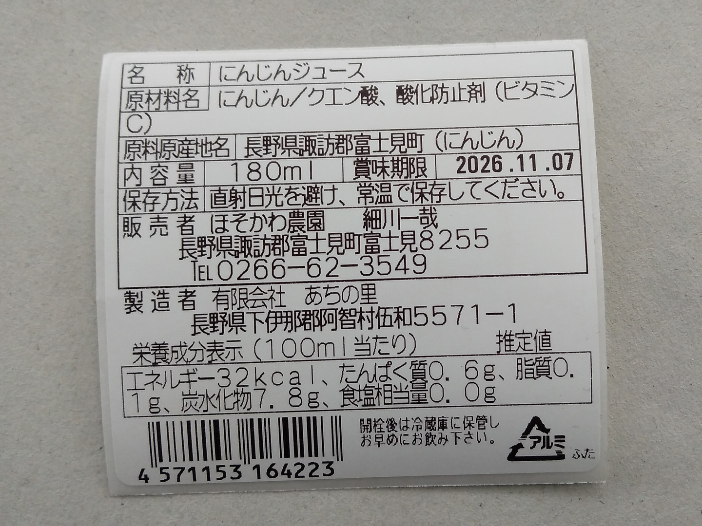 クセがなく、爽やかで飲みやすい! 八ヶ岳のにんじんジュース 180㎖✕10本