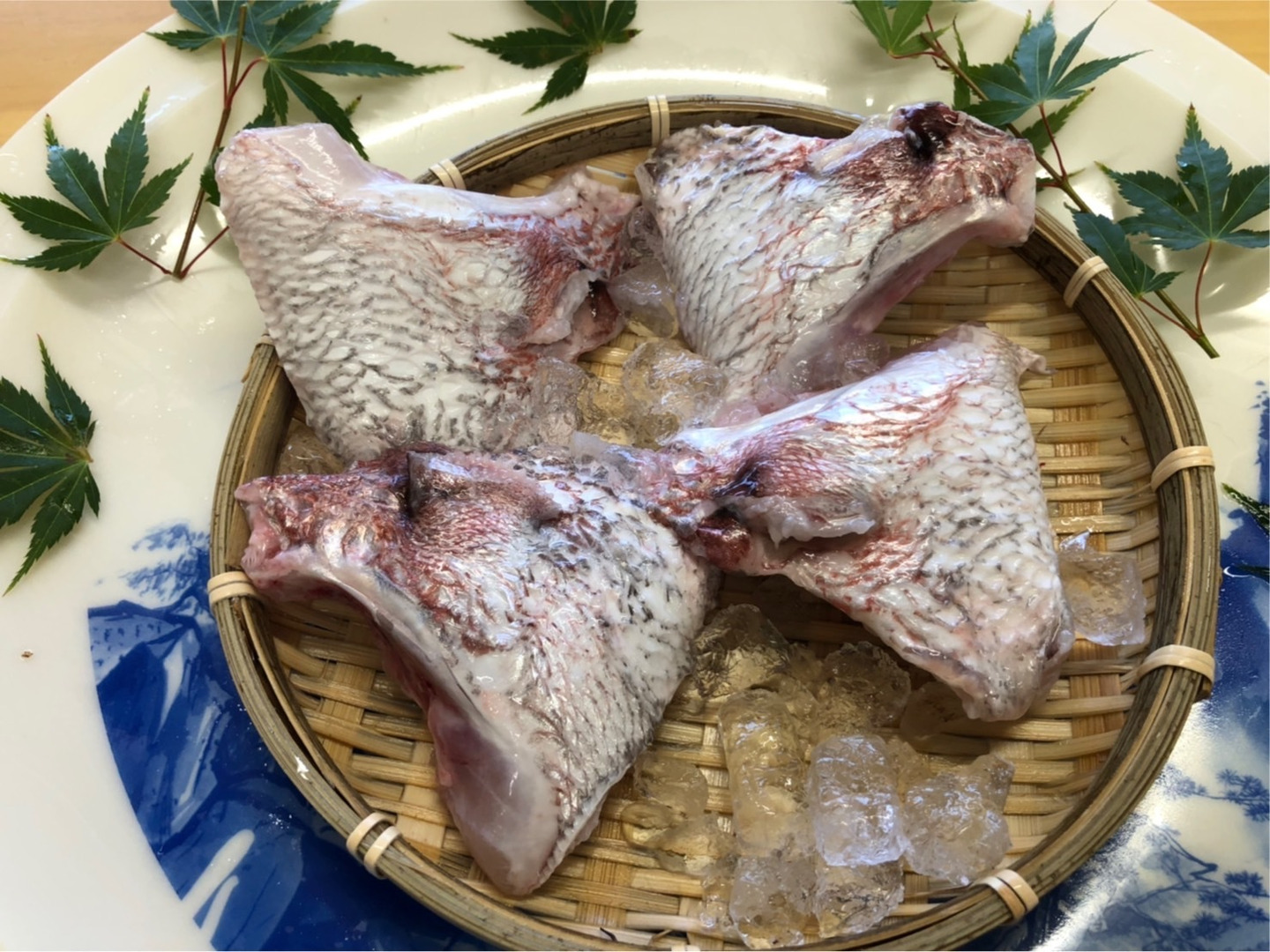 【旨味抜群】鯛の湯引きロイン2尾分(1パック270g×4)1080g分(冷蔵)カマ付2pc 8個入り 原魚サイズ1.5kg 皮なし骨無し加工
