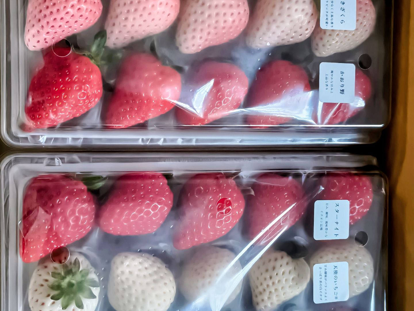 赤いイチゴから4品種と、2品種の白イチゴをお届けいたします。