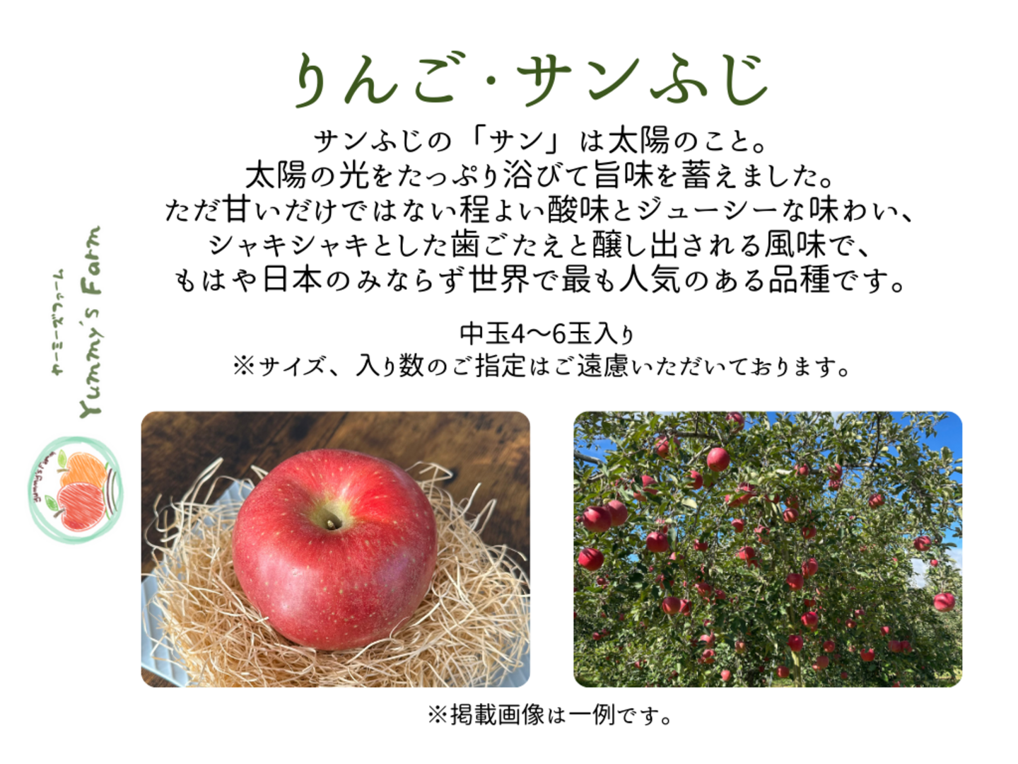 昼夜の寒暖差が大きく雨量が少ない果樹栽培に適した長野市長沼地区のりんごはシャキッとした歯ごたえで甘味と酸味のバランスが良く美味しく仕上がります。