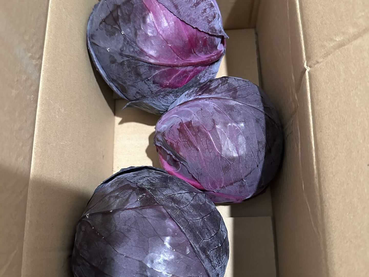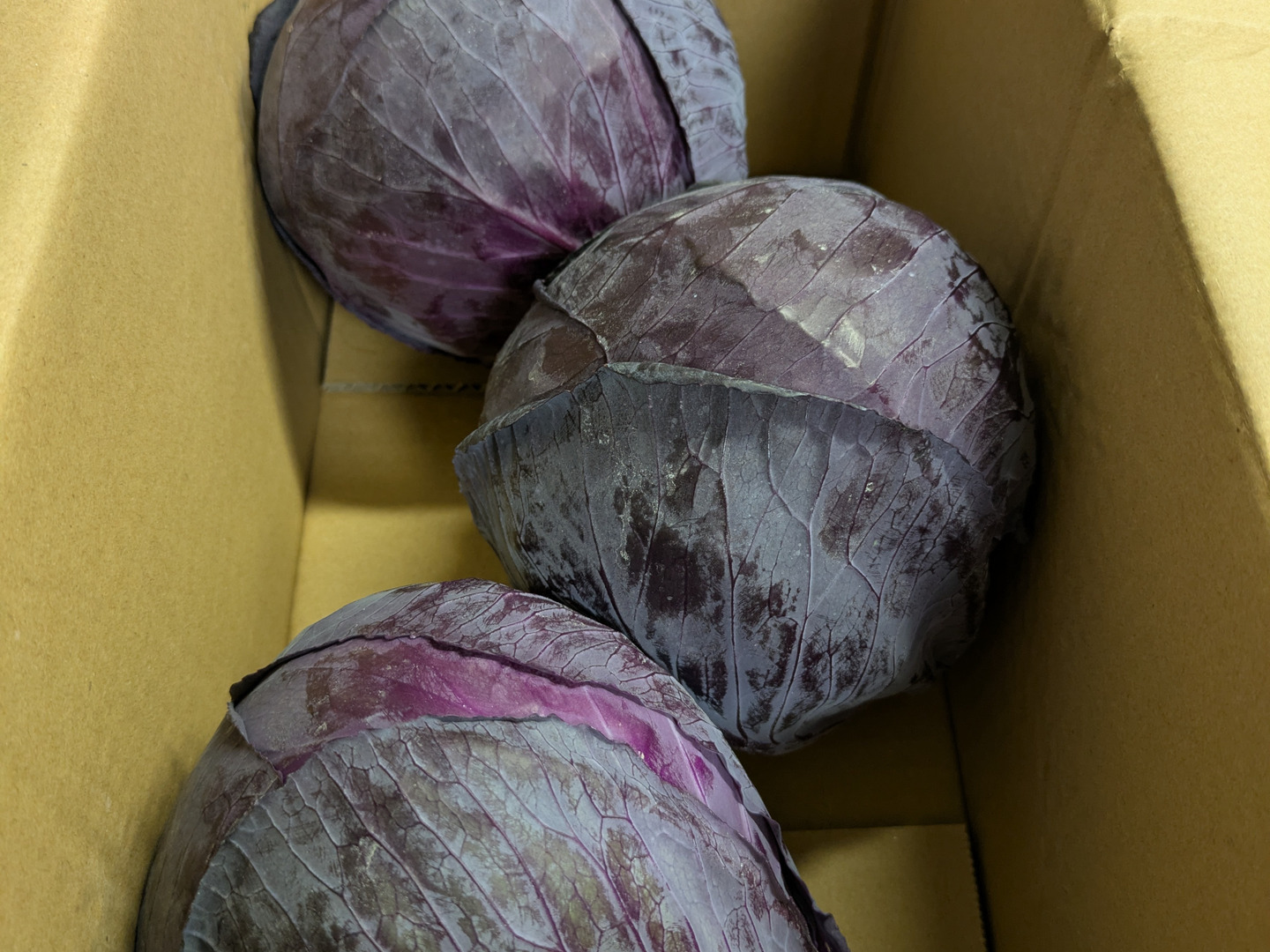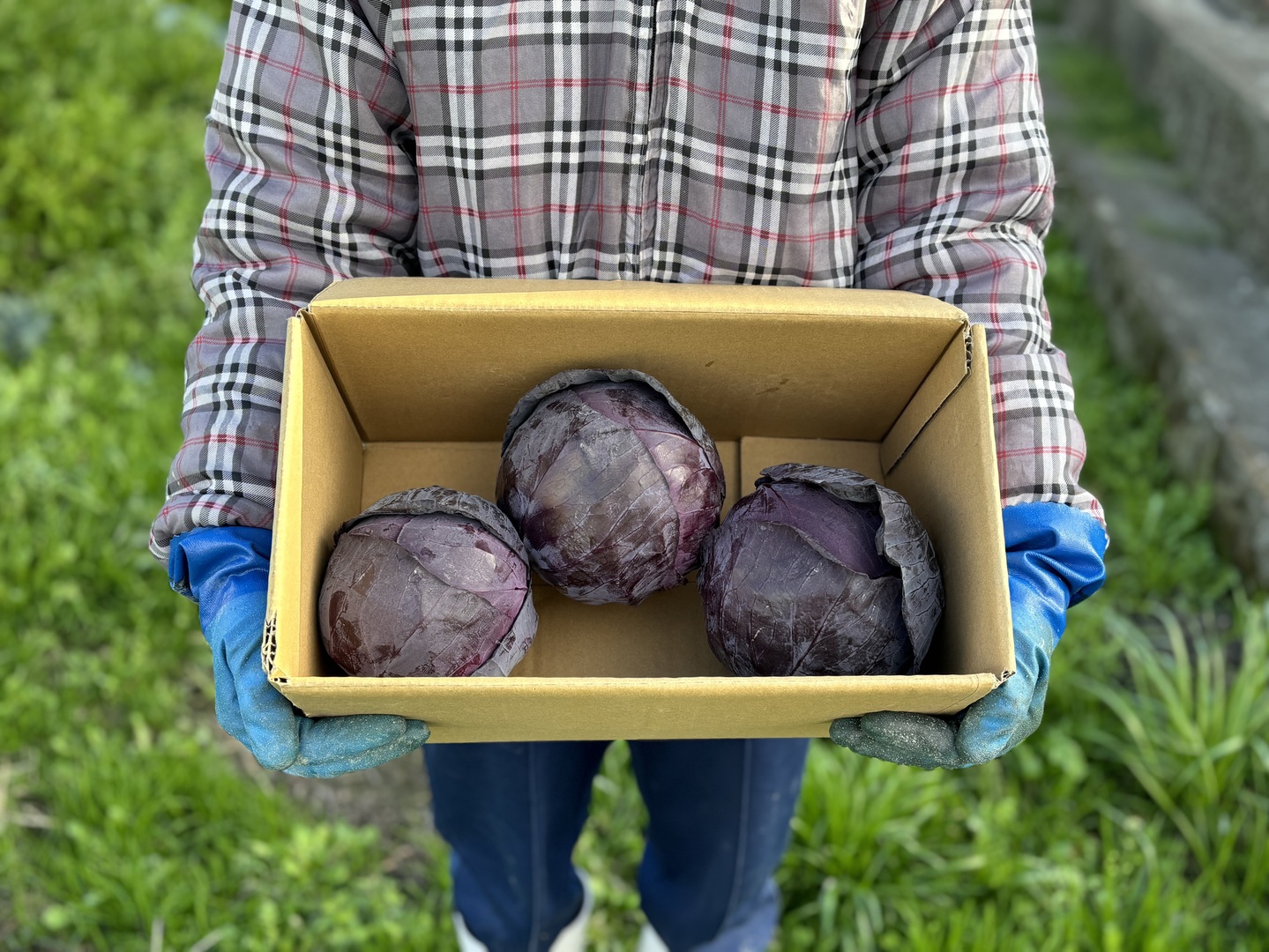 レッドキャベツは大きくなりにくい野菜ですが、丹精込めて大事に育てました。