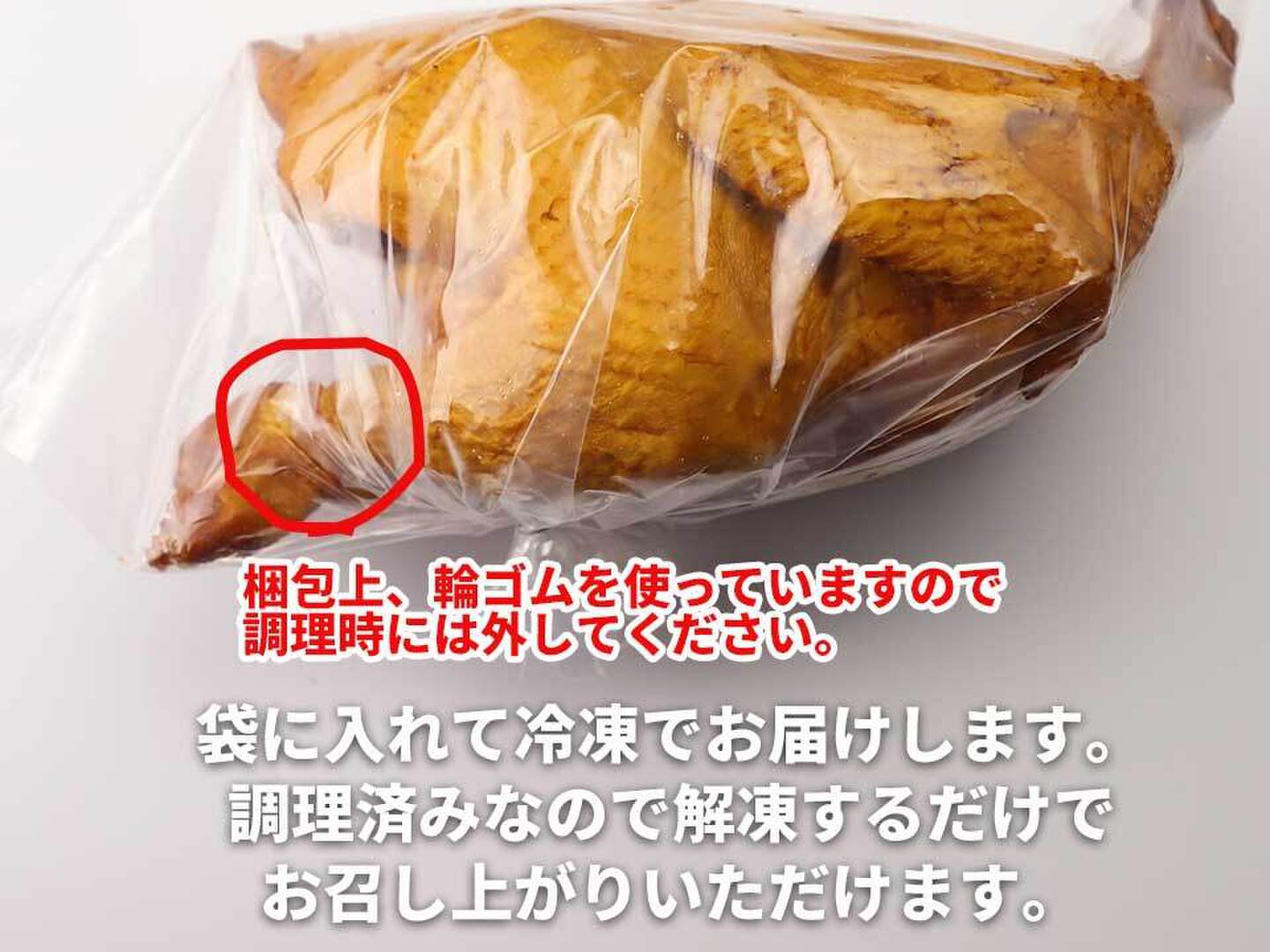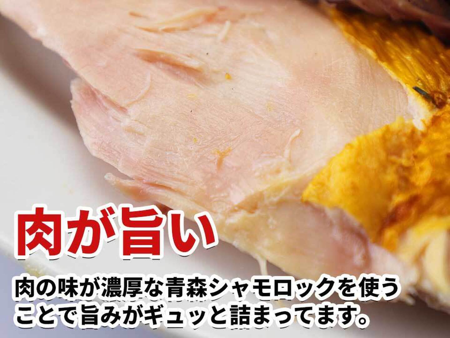 | 内容 | 青森県産 青森シャモロック 丸鶏スモークチキン1羽 約1.4キロ(鶏足(もみじ)付き) | ||||||
