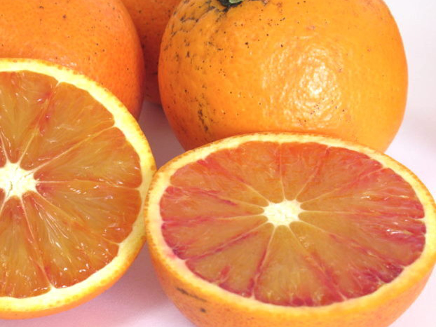 イタリア料理に欠かせない柑橘で、果皮がほんのり赤く、果肉の一部が赤オレンジ色です。