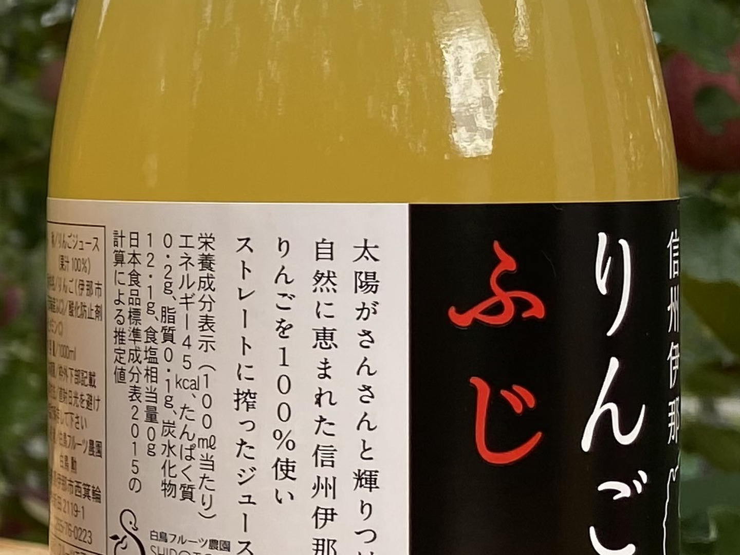 りんごジュース1000mlサンふじ3本、ムーンルージュ3本