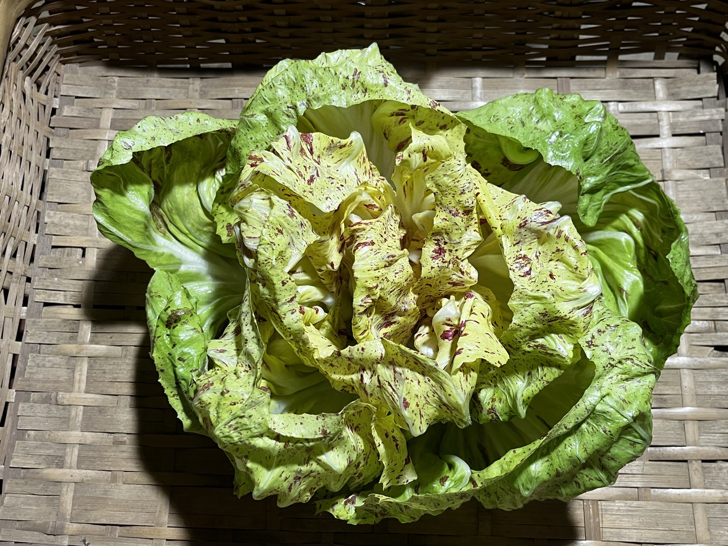 ライトグリーンやクリーム色の葉に赤い斑点の入っており、チコリの女王とも言わます。サラダはもちろんサンドイッチなどにも。とにかく美しいの一言。