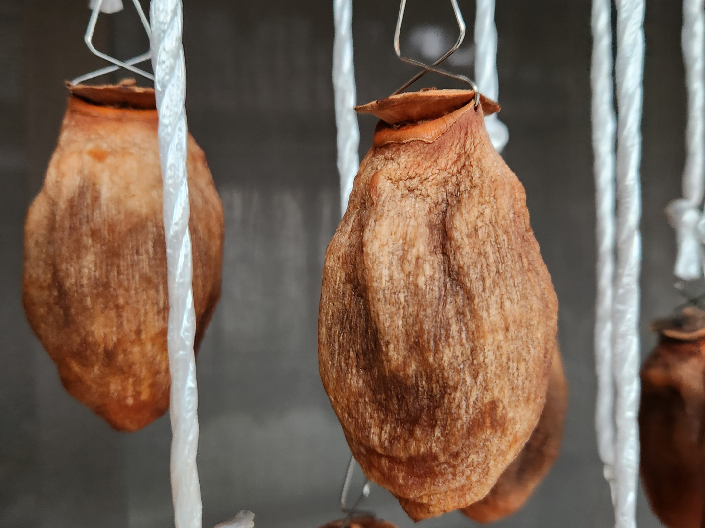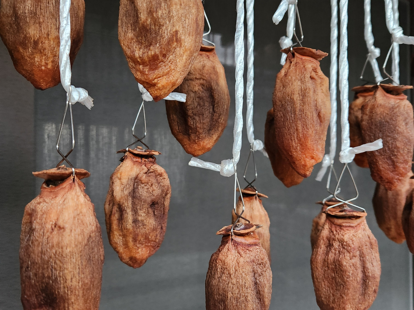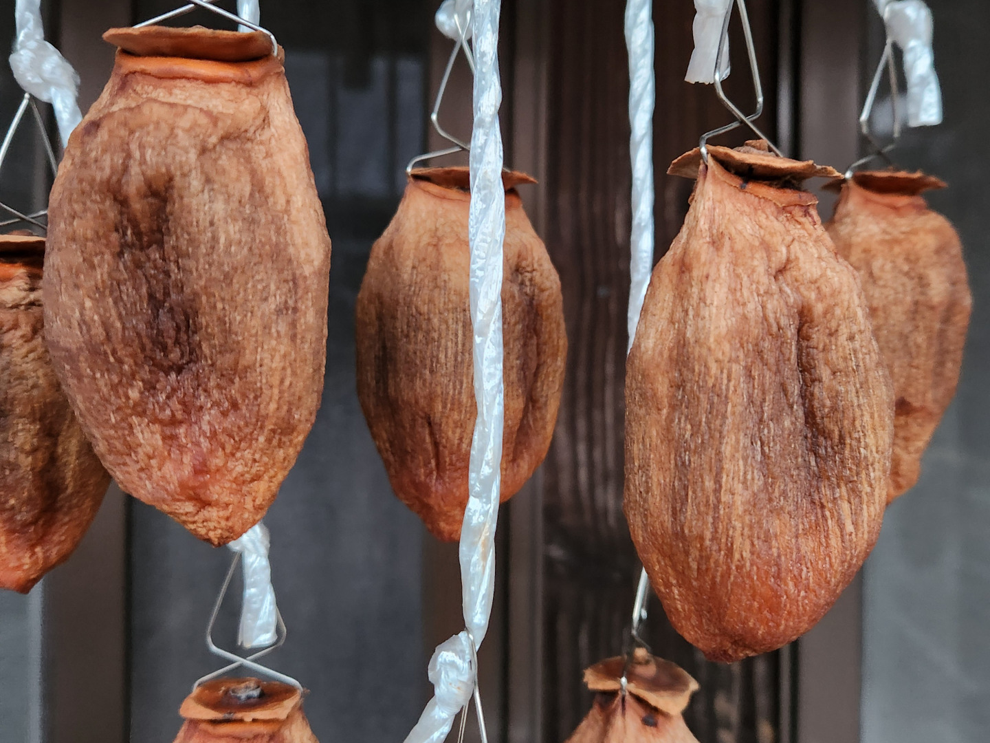 今年は全国的に柿が不作で例年の3分の1と言われています。野山の木の実や果実類も実らなかったため野生動物達もかなり食べ物がない状態で民家を荒らしに下りて来ています。また、10月~11月中旬までの気象条件が良くなく仕込んだ干し柿が全てダメになり早期の出荷ができませんでした。今回出荷する品は11月後半になり気象条件が整った後に仕込み始めた柿です。