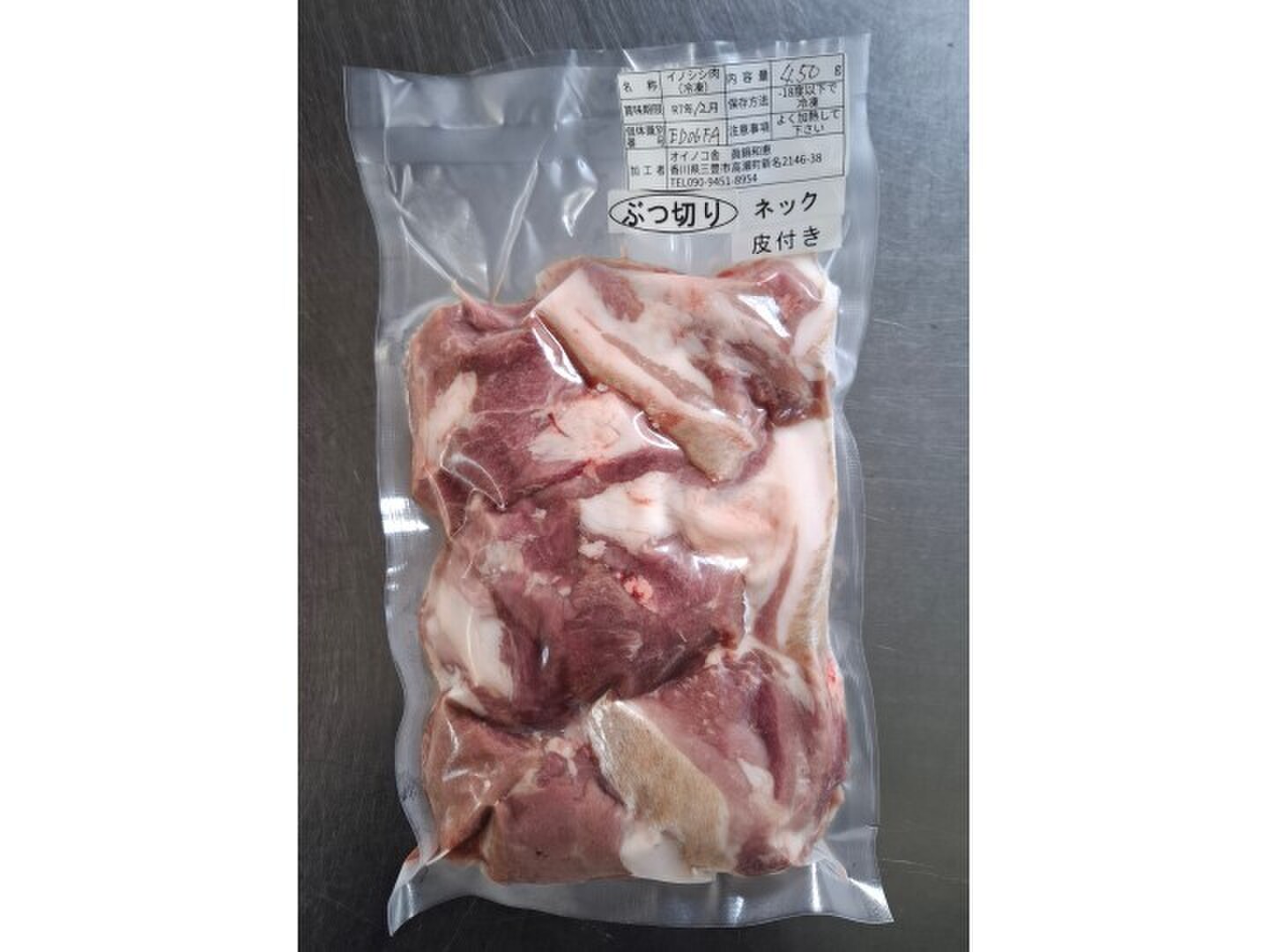 ジビエ イノシシ 【皮付き】 ネック ブツ切り 450gです。