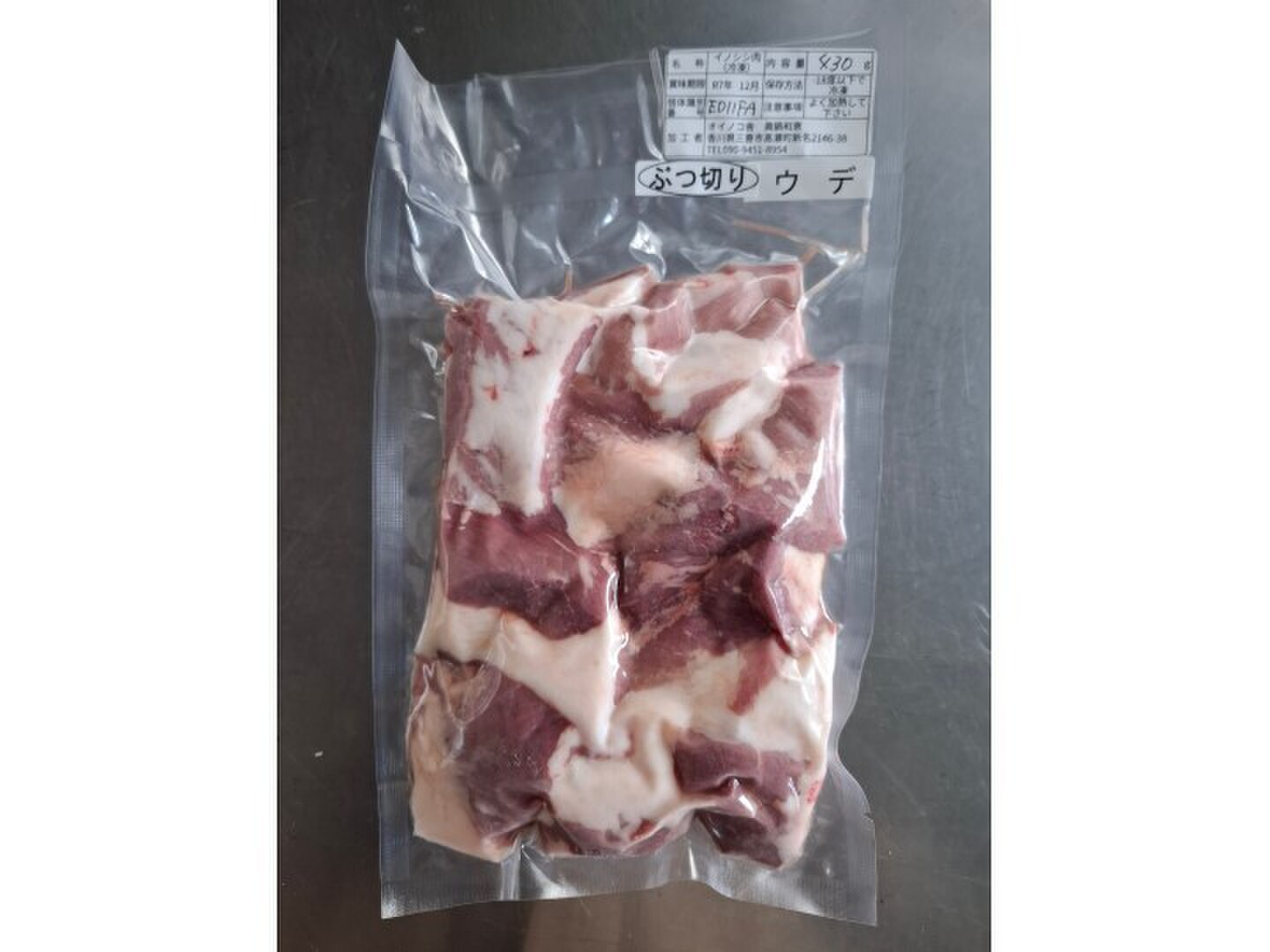 イノシシ ウデ ブツ切り 430gです。