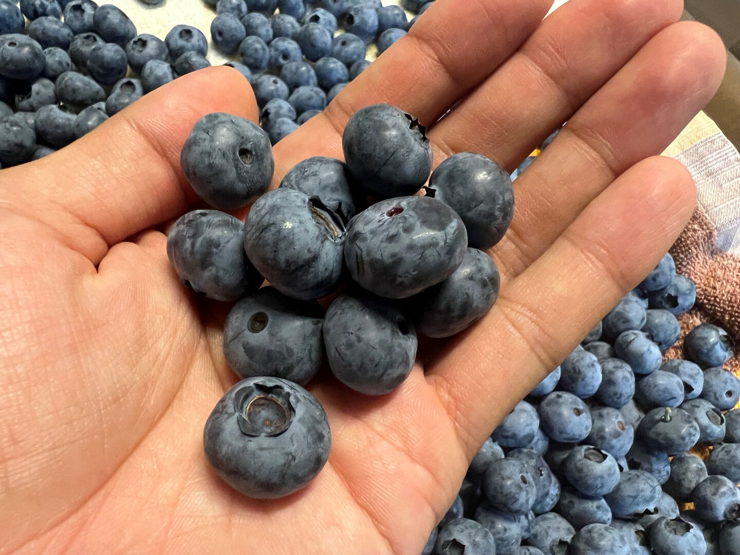 北田りんご園では、大粒で味、香りともに爽やかなブルーベリーを完熟に近づけるよう、ぎりぎりのタイミングで収穫するよう摘み取りを行っています。今回の商品は、生果での訳あり品を冷凍した加工向けのものになります。ケーキやマフィン、スムージー、お菓子作りにいかがでしょうか。もちろんそのままでも食べられます。ぜひお試しください。