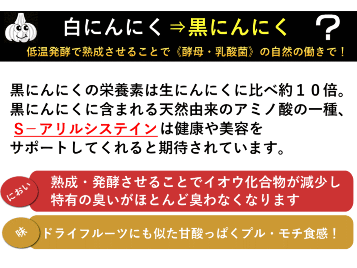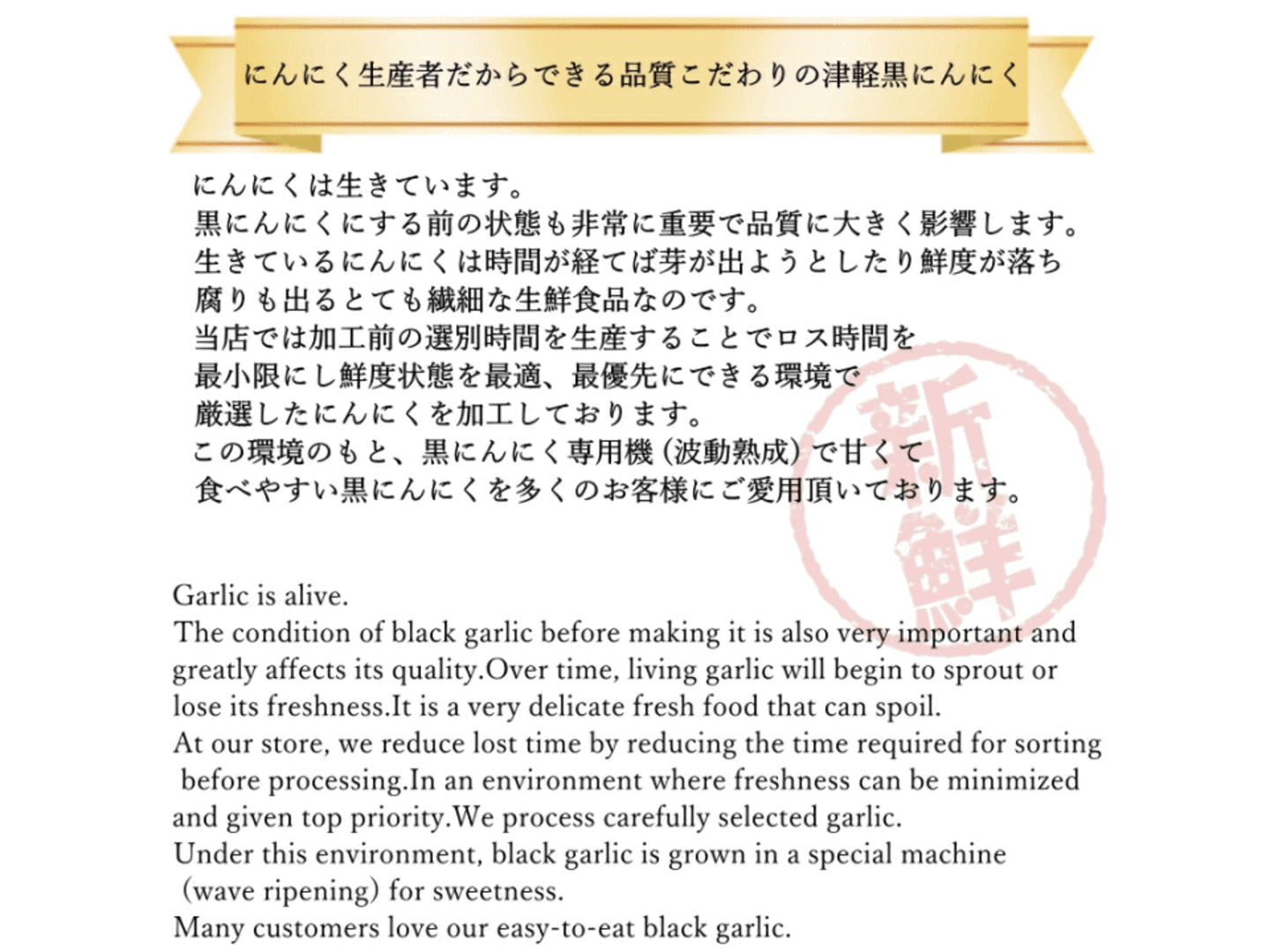 - 生産から加工まで一貫管理。品質に自信ありの黒にんにくです!