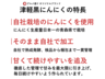 - 自社栽培のにんにくを使用。にんにく生産量日本一の青森県で栽培!