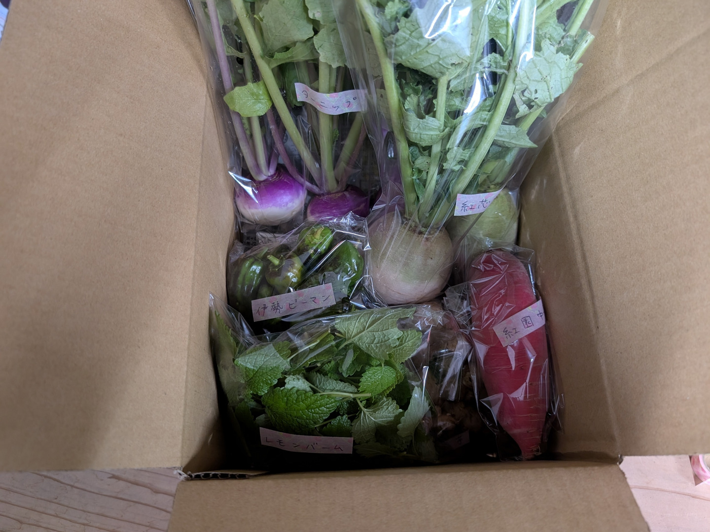 小松菜、ビタミン菜、山東菜、水菜、チンゲンサイ、カブ、大根、人参、菊芋、ジャガイモ、里芋、サツマイモ、他