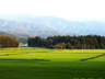 - 3 遠くに連なる緑り豊かな山々と初夏の水田地帯に【こしひかり】や【新之助】と【恋の予感】や【縁結び】と【ひとめぼれ】と【こがねもち】などの7品種を栽培しています