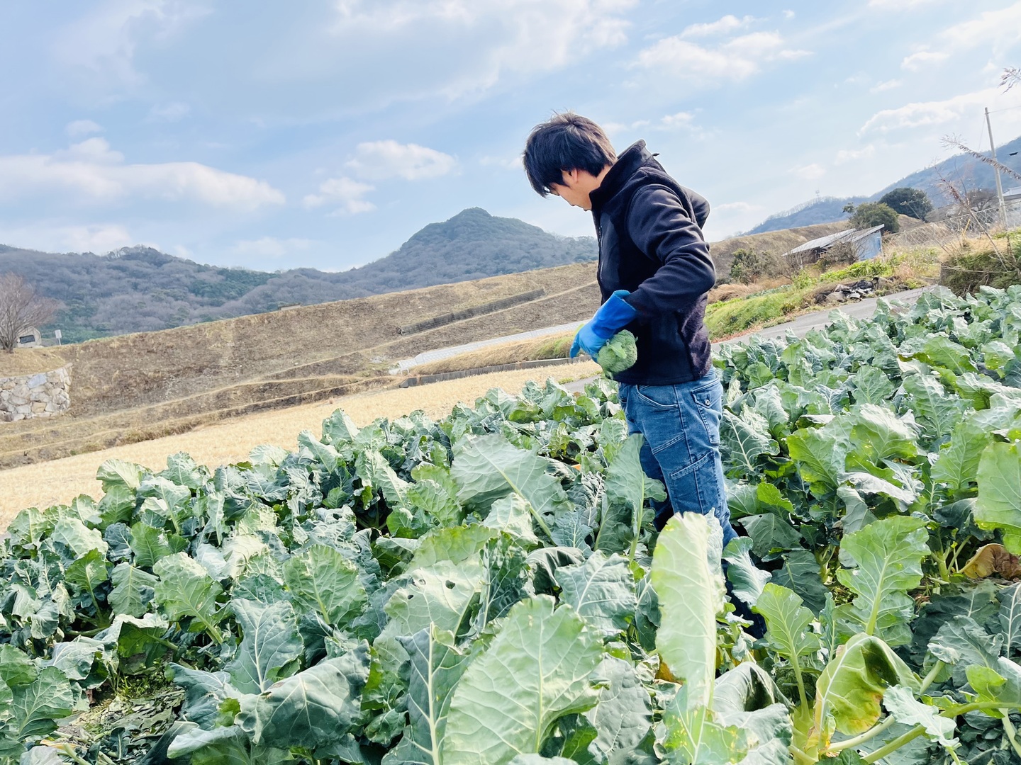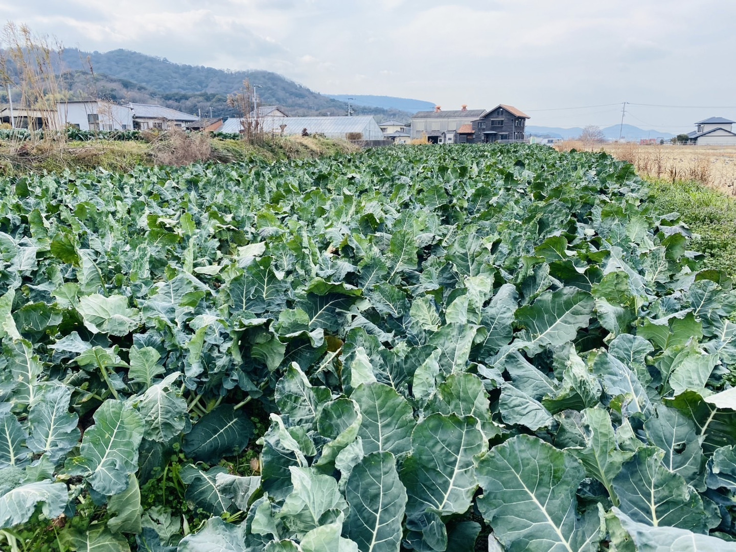 瀬戸の潮風にあたって育った朝採りブロッコリーを80サイズの箱にぎゅうぎゅうに詰めて、その日のうちに発送します。