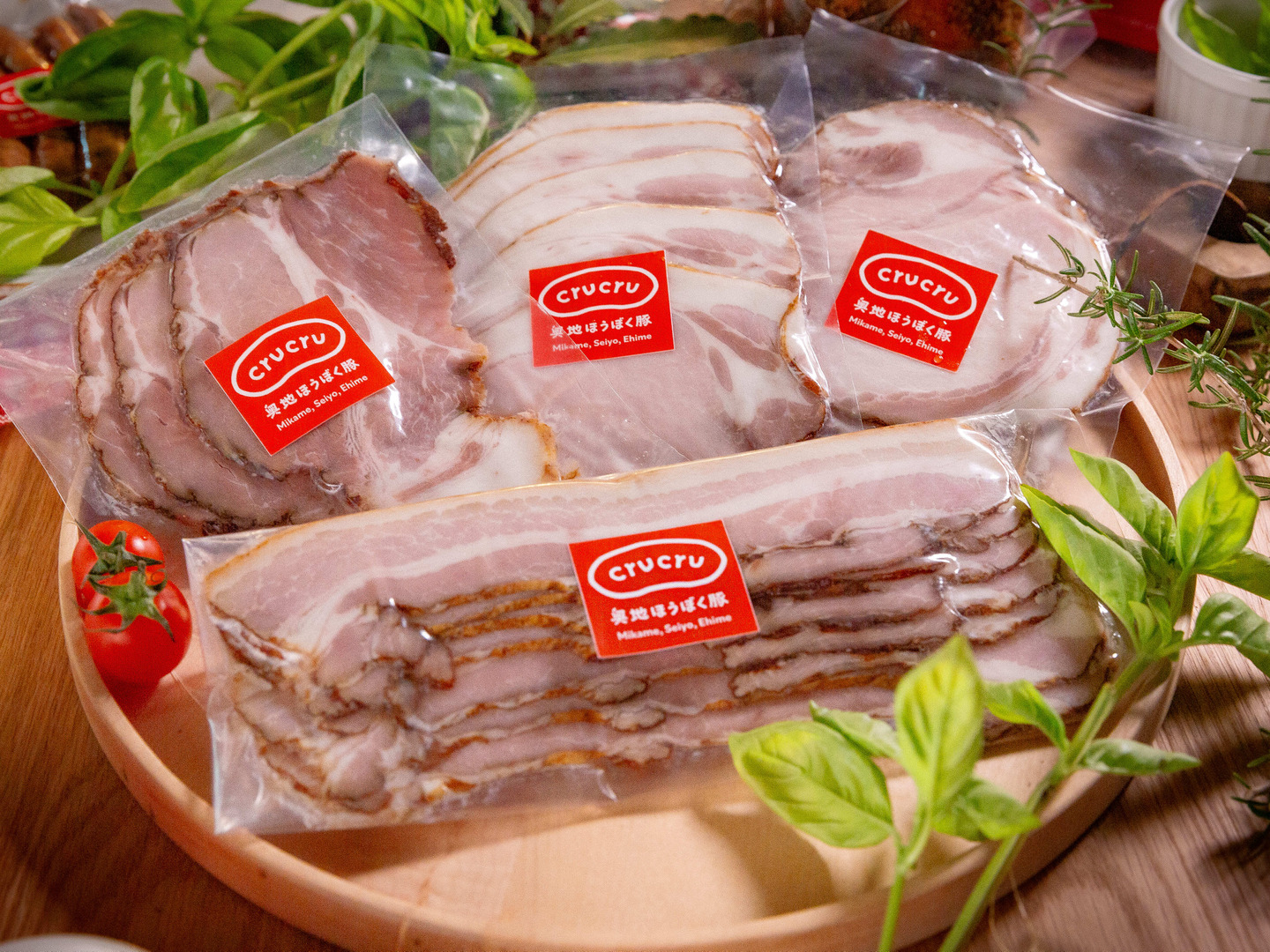 その「奥地ほうぼく豚」を使った、人気のハム・ベーコン各2種を食べ比べ出来るセットです。
